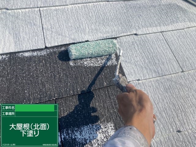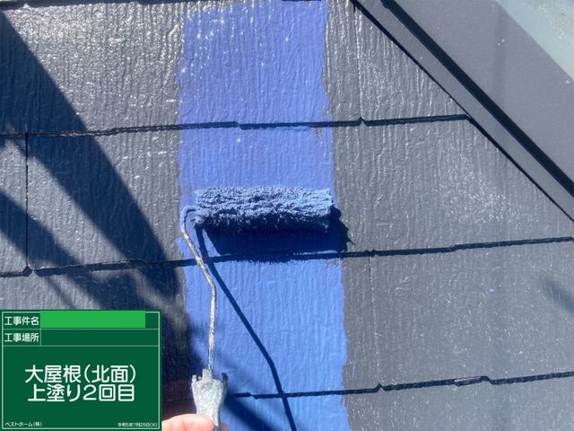 屋根は最も紫外線と熱を受け、劣化が早い部位なので念入りに塗装します。