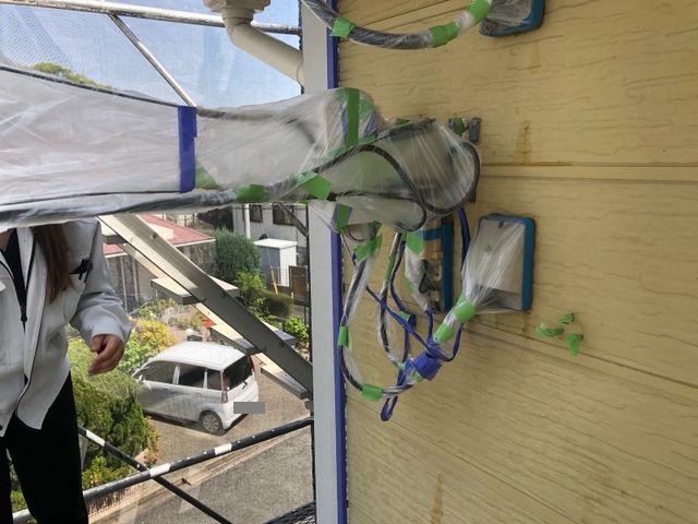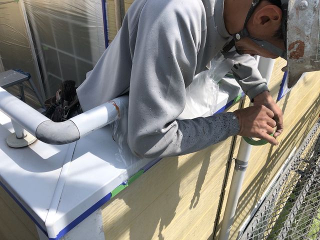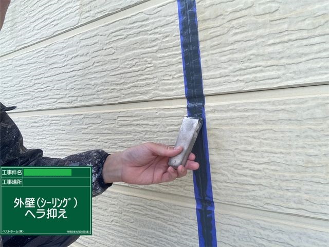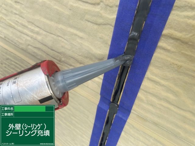 養生を剥がしたらシーリング工事完了です。シーリングが十分に乾いてから塗装作業にうつります。