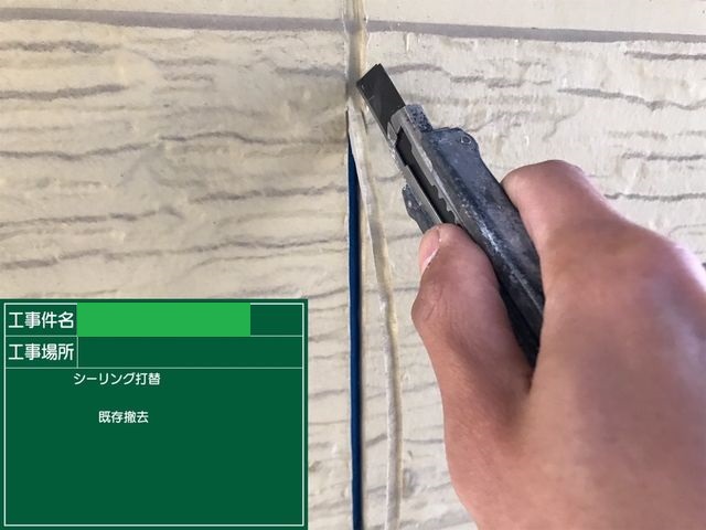 シーリングの撤去にはカッターを使用するため、外壁材を傷つけないように細心の注意を払います。