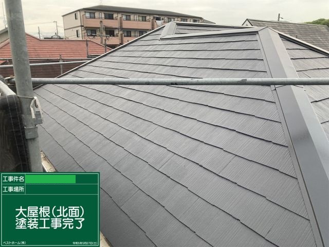 屋根塗装作業が完了しました。とてもキレイな仕上がりです。