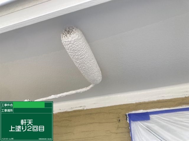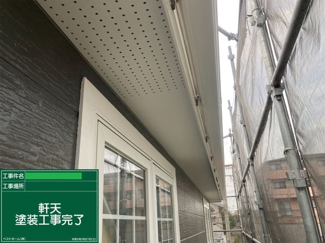軒天塗装が完了しました。とてもキレイな仕上がりです。
