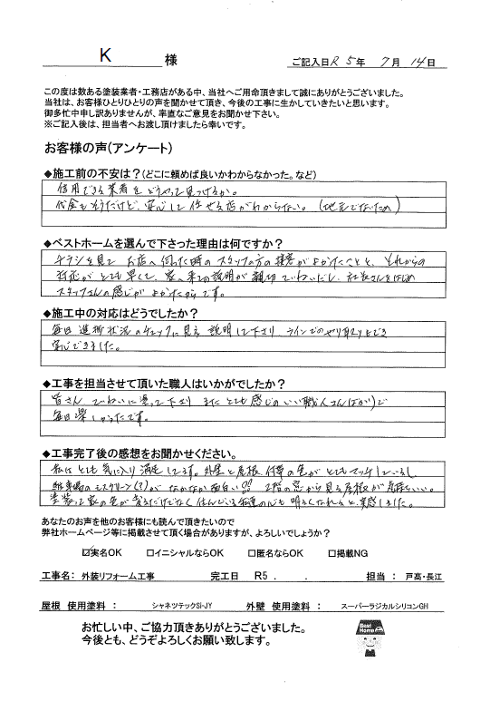 ◆工事を担当させて頂いた職人はいかがでしたか?