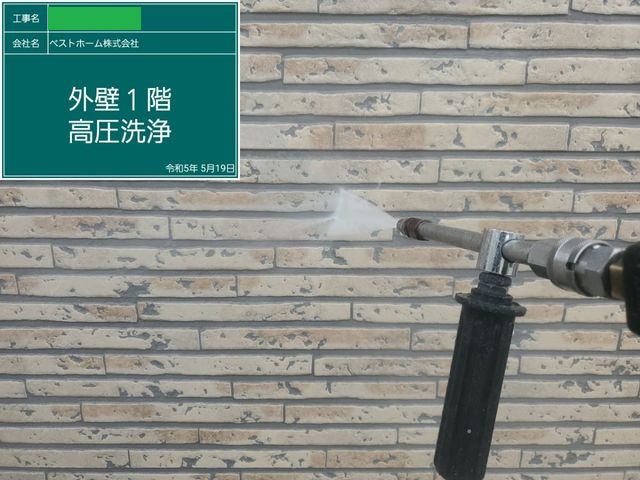 高圧洗浄では想い植木鉢をのけて隅々までしてくれ、塀も欠けている部分を補修してから