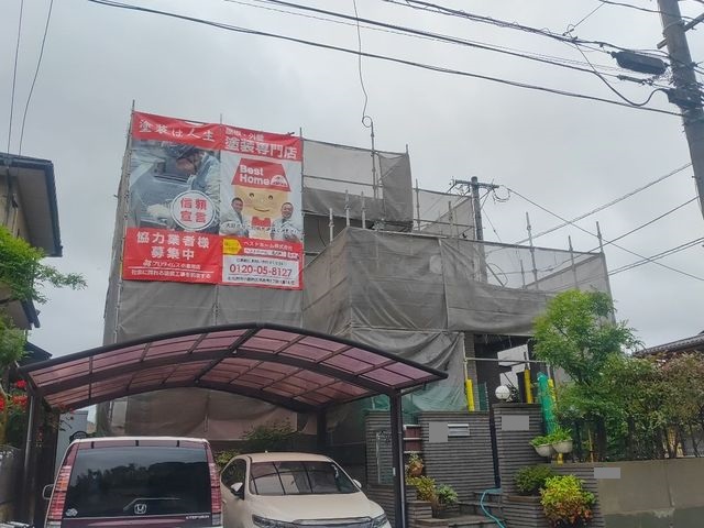 | 施工箇所 | 外壁・屋根・破風・鼻隠し・軒天・小庇・胴差し・ボードシーリング打ち替え・ フード・雨樋・シャッターBOX・土台水切り・外構塀・基礎 |