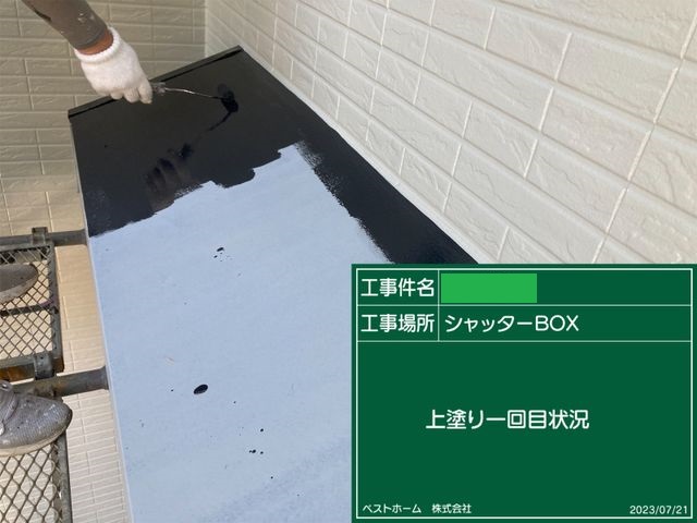 シャッターボックス塗装上塗り1回目