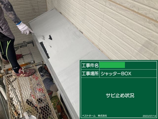 シャッターボックス錆止め塗装