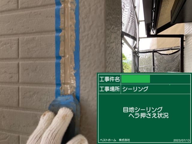 外壁シーリングヘラ押さえ