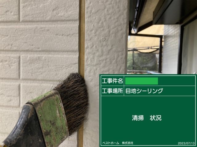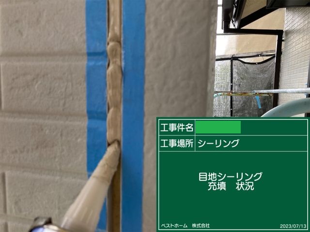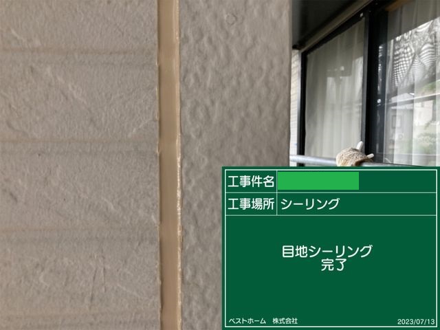 養生を剥がしたらシーリング工事完了です。シーリングが十分に乾いてから塗装作業にうつります。