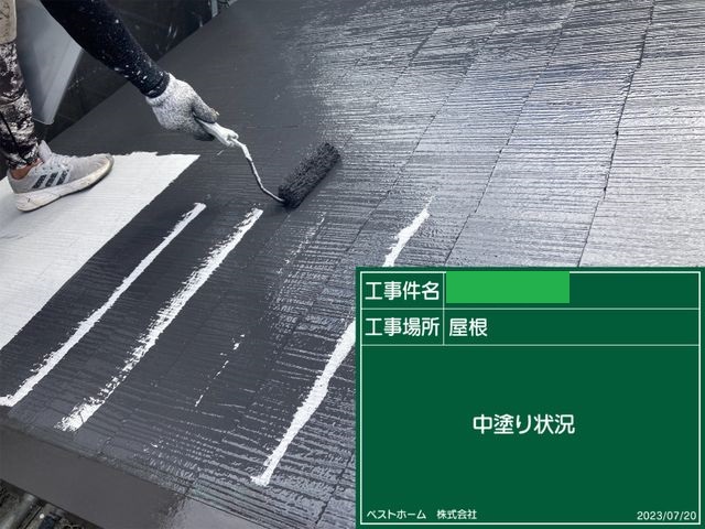 屋根塗装上塗り1回目