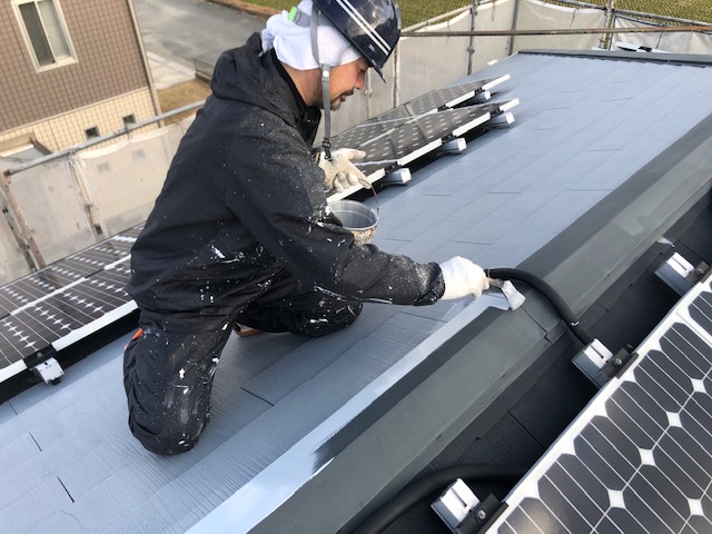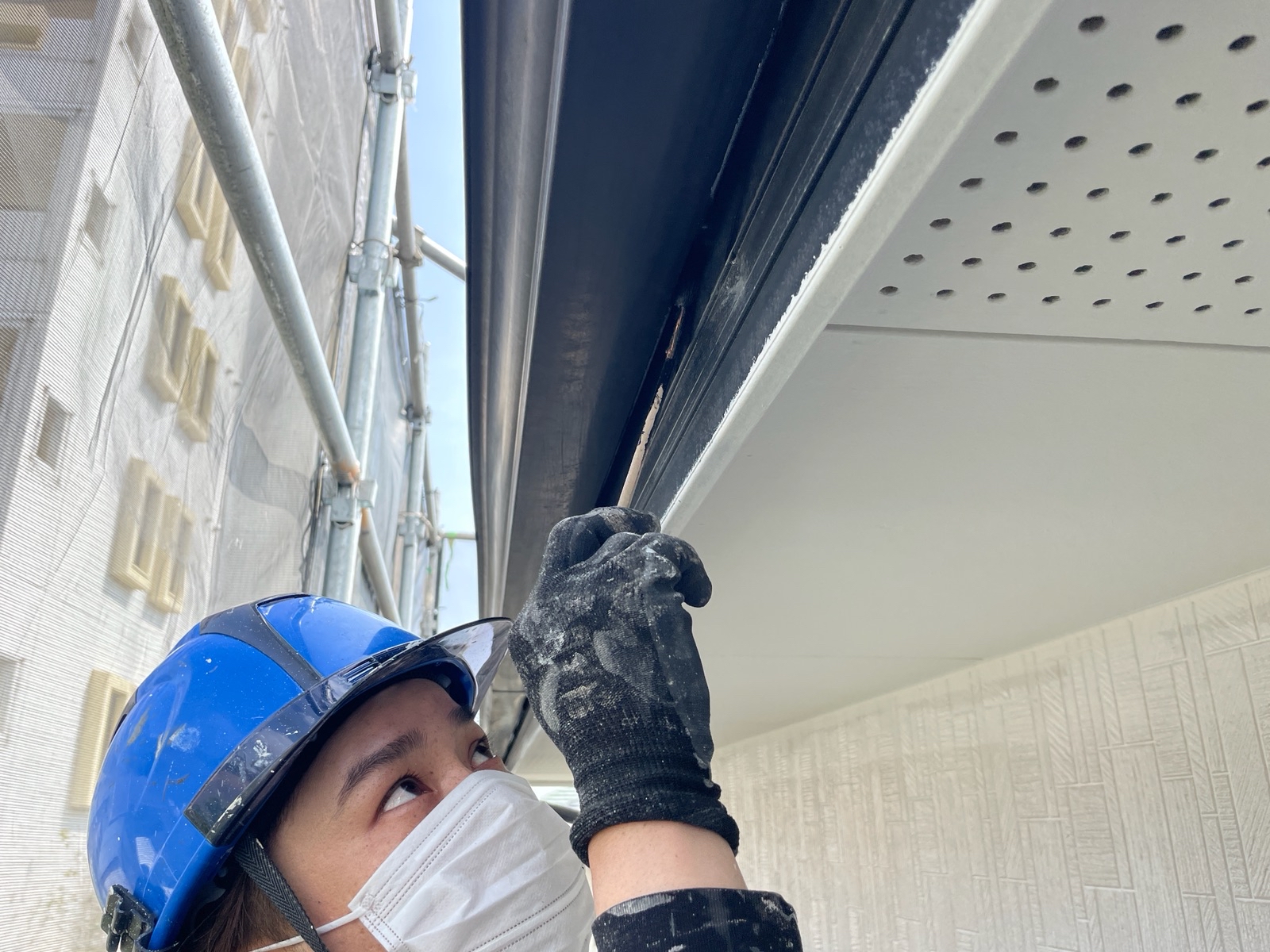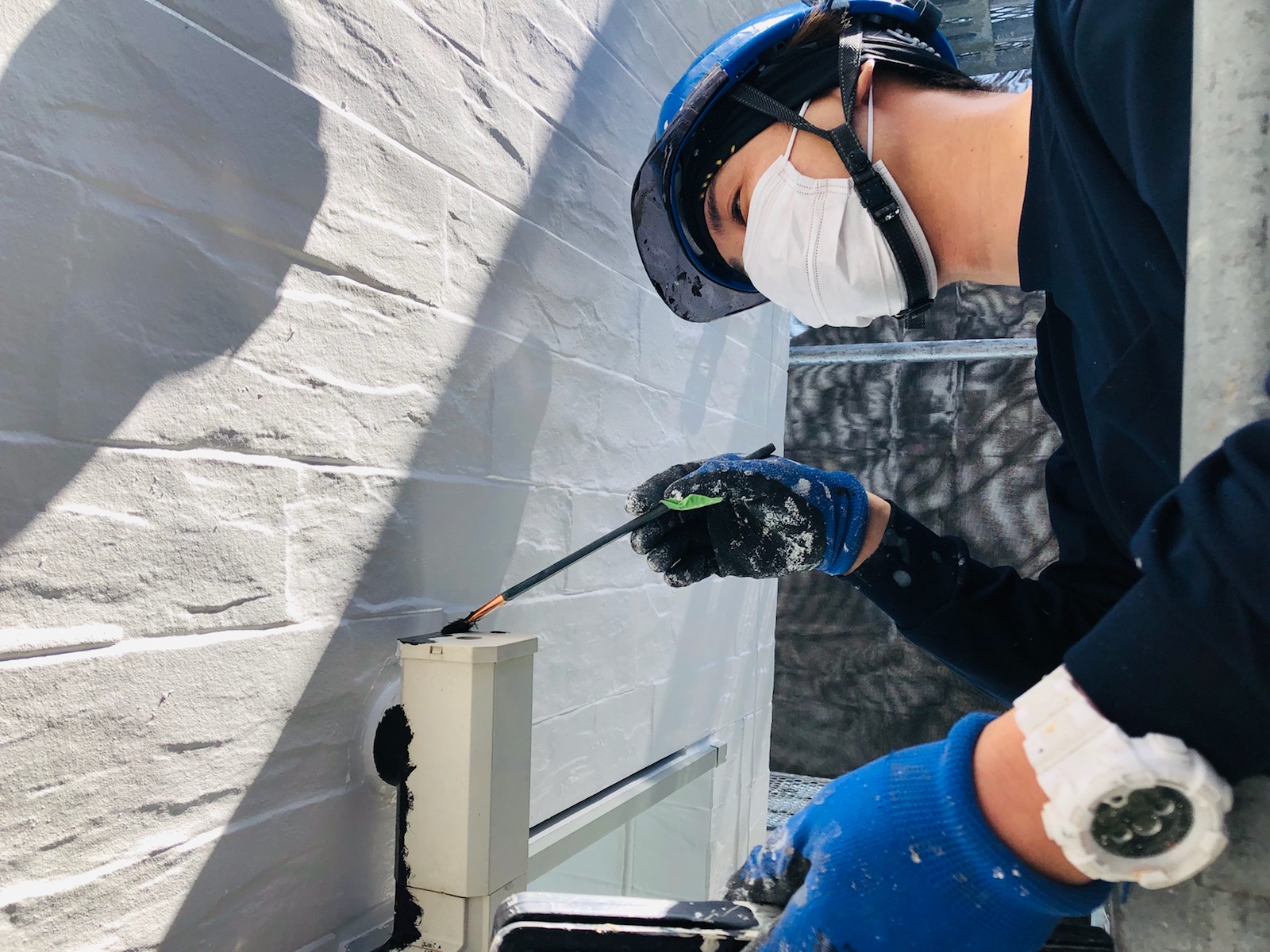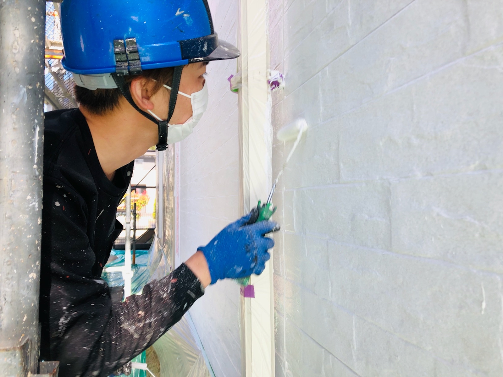 塗り残しがないように丁寧に施工するのはもちろん、現場管理の方と隅々まで二重にチェックして上塗り塗装に進みます。