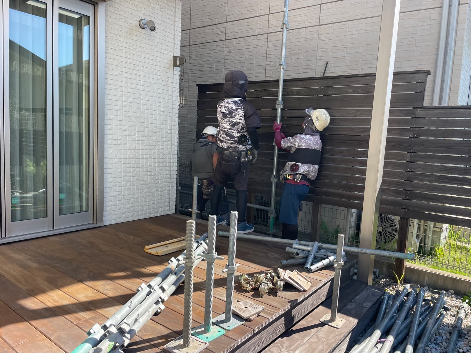 次回施工・・・ウッドデッキ塗装、手直し・清掃、足場解体前検査