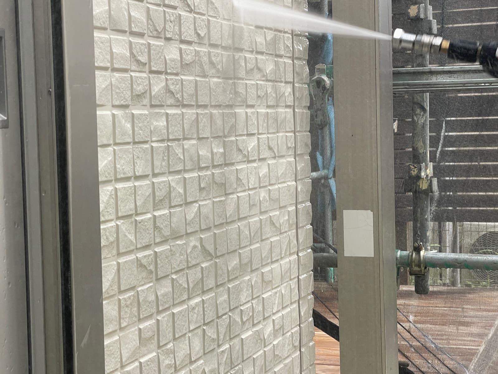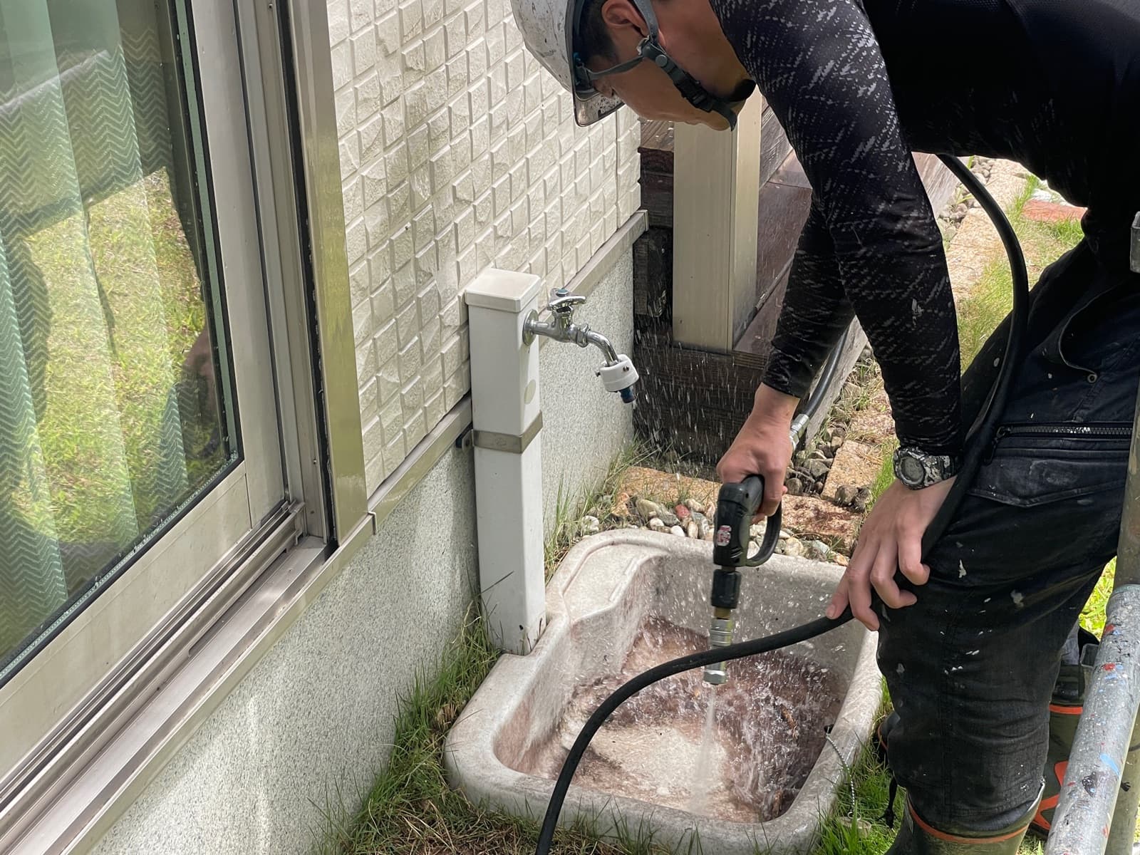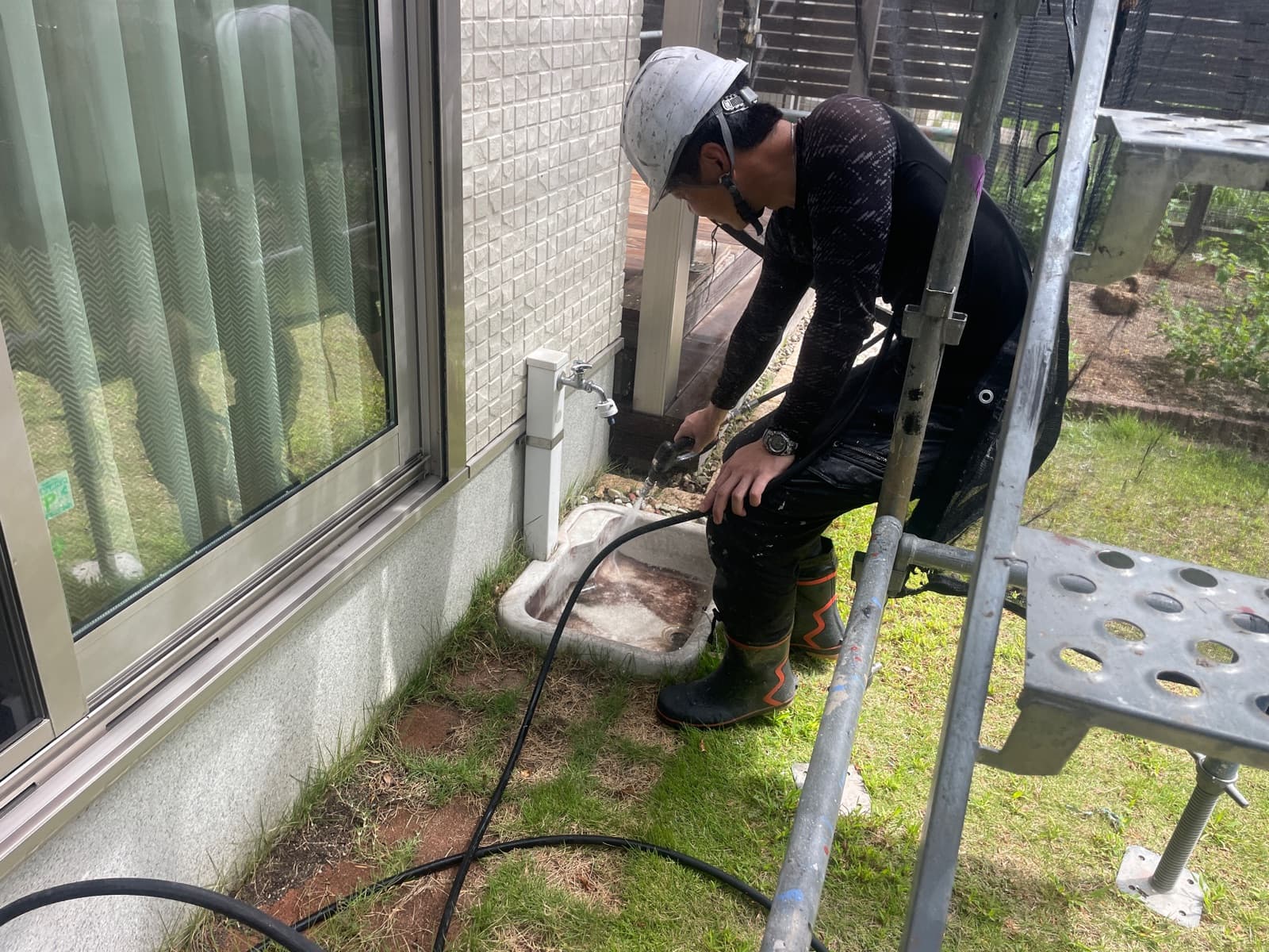 高圧洗浄で、旧塗膜や蓄積された汚れをできるだけ落としております!