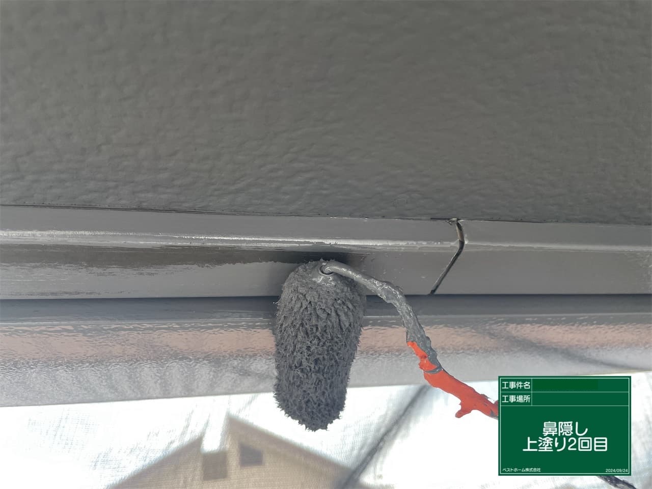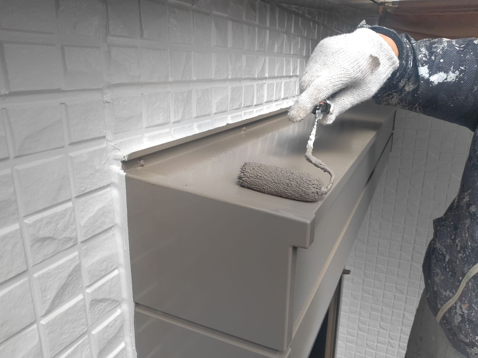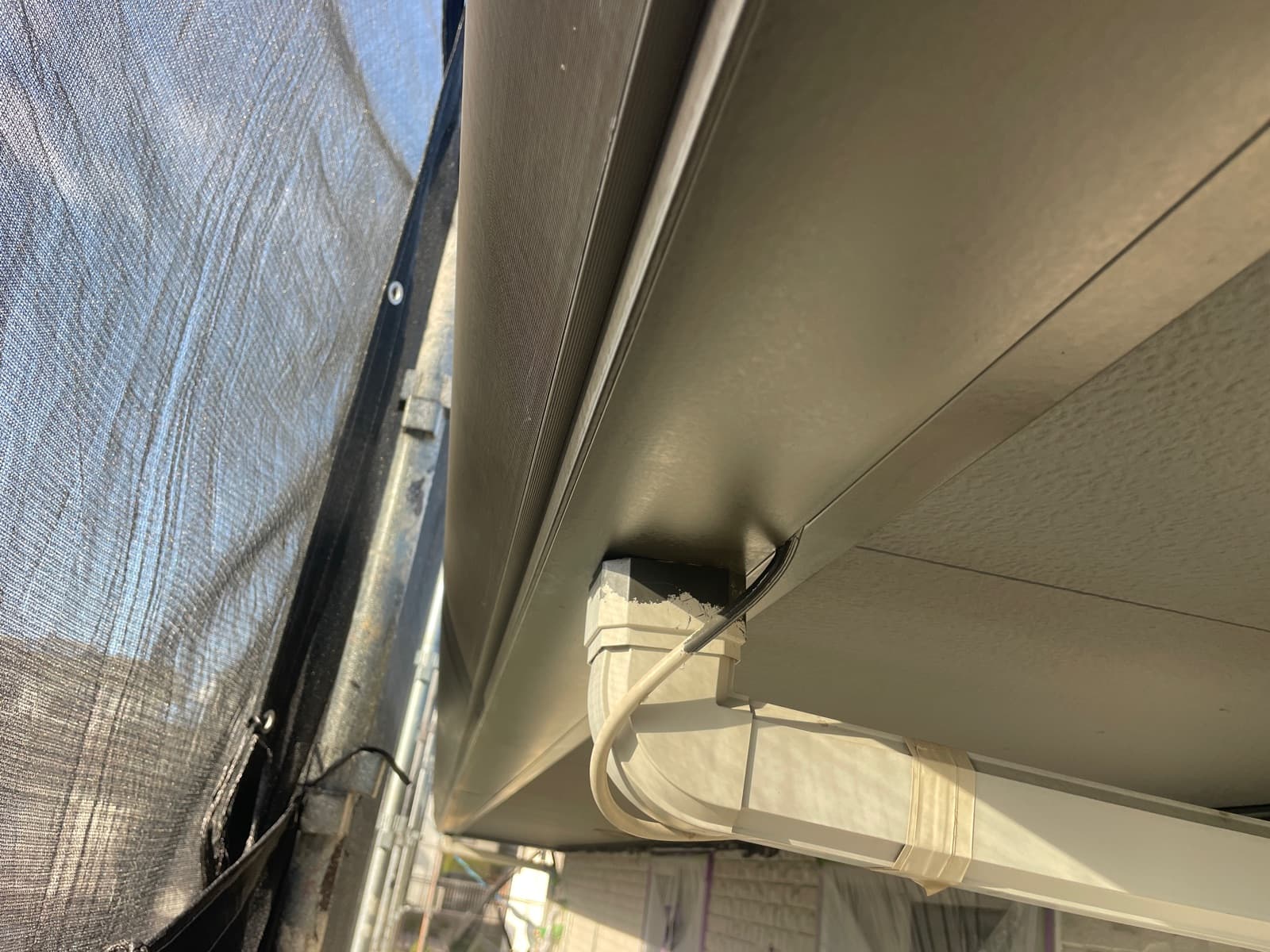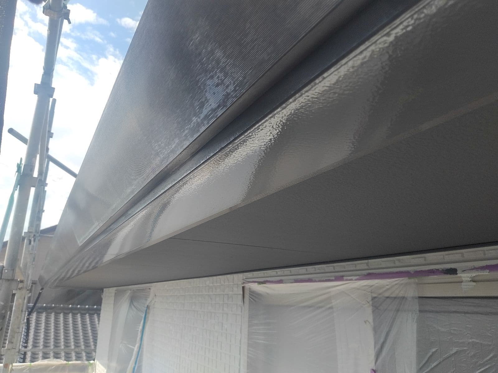 外壁の上塗り2回目も終わり、軒樋などの付帯部塗装をおこなっております!
