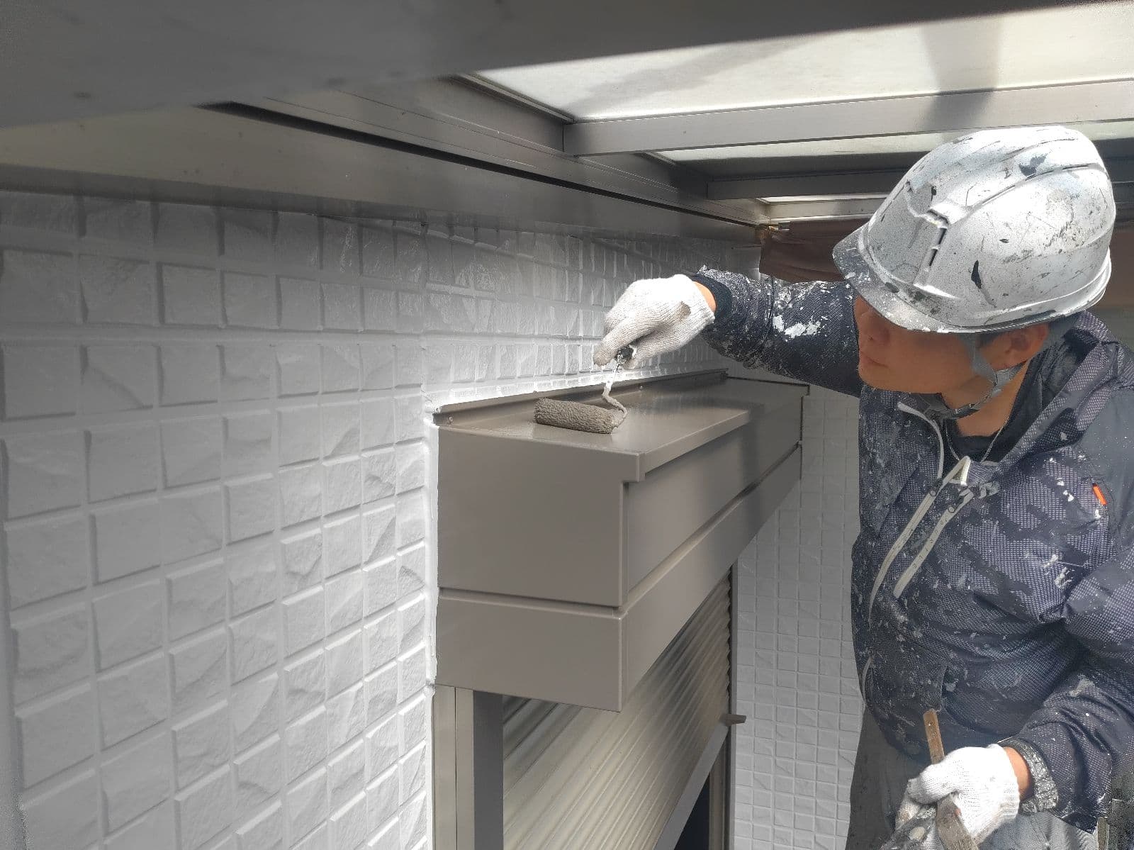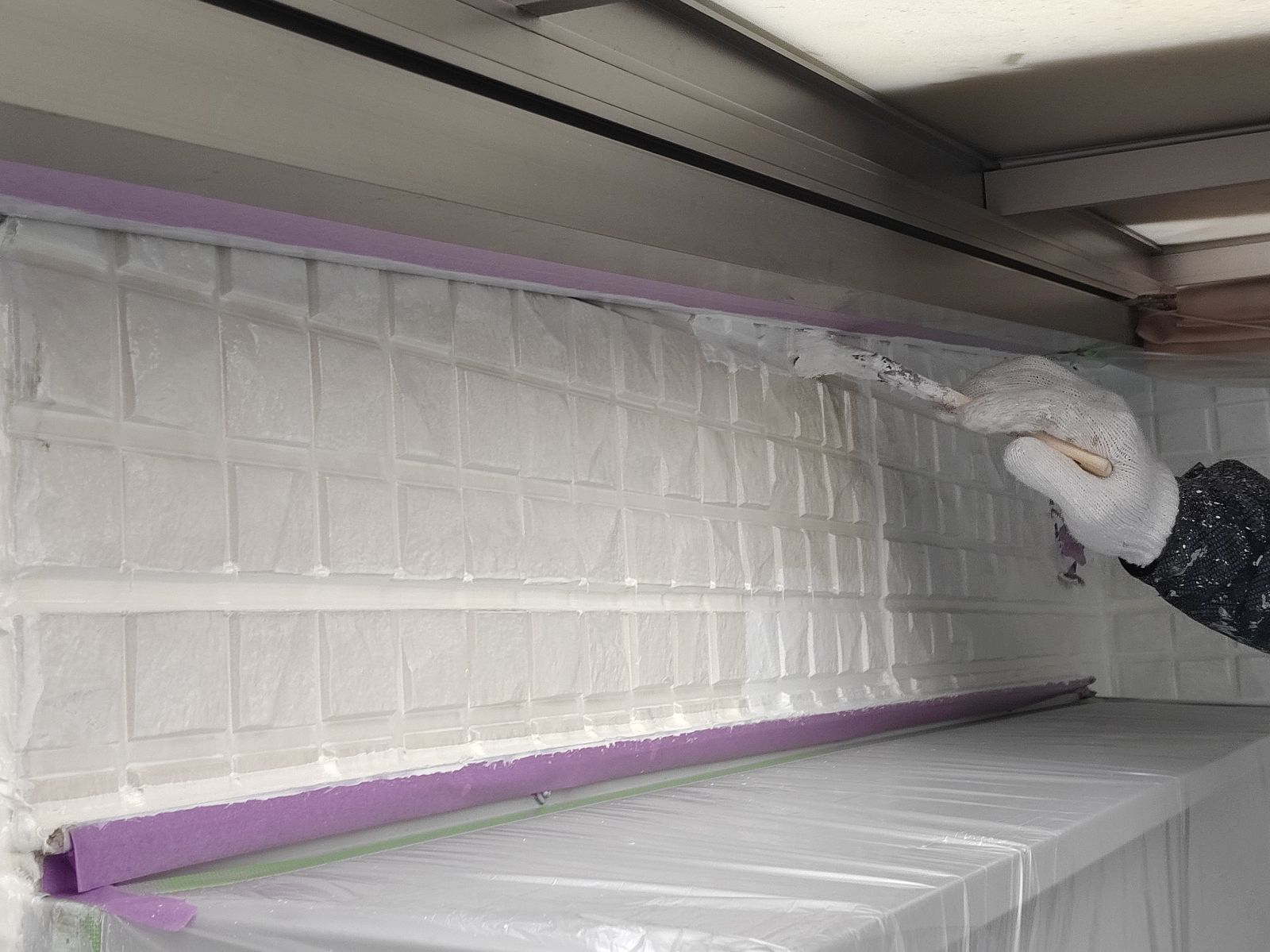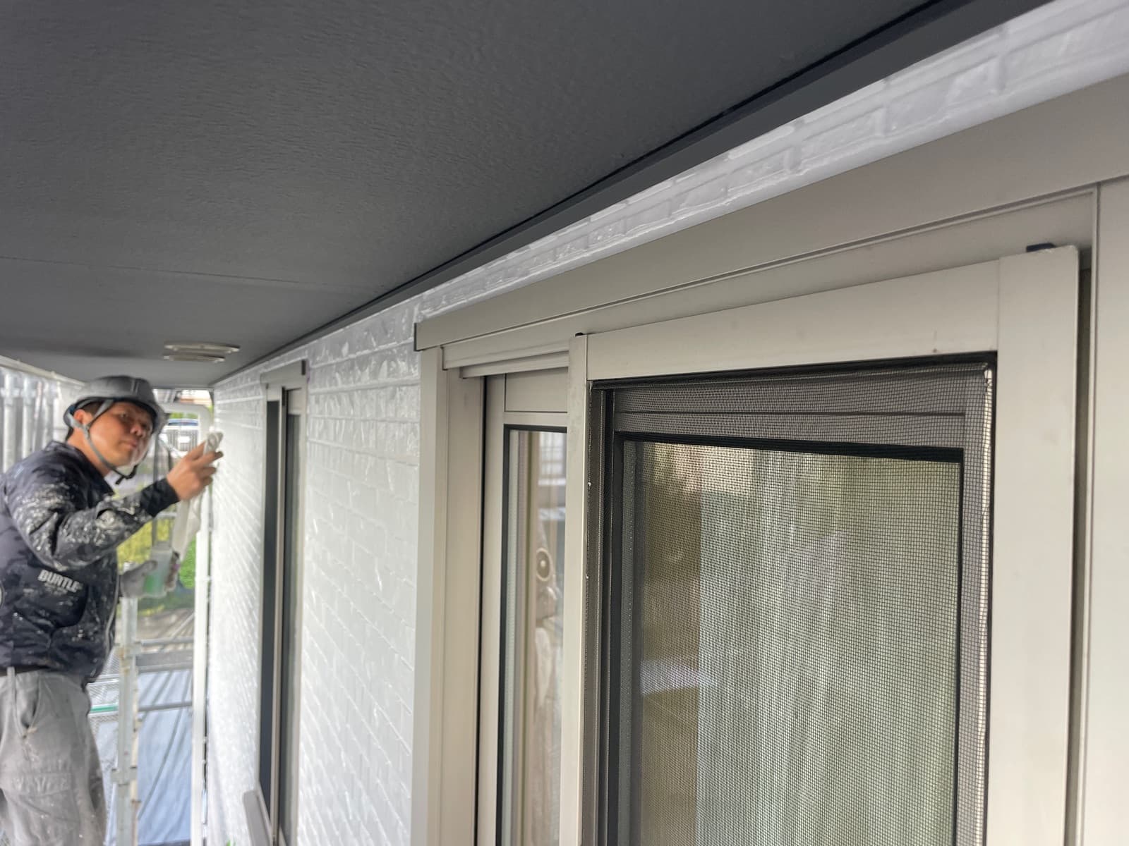 本日は外壁上塗り1回目をおこなわせて頂きました!