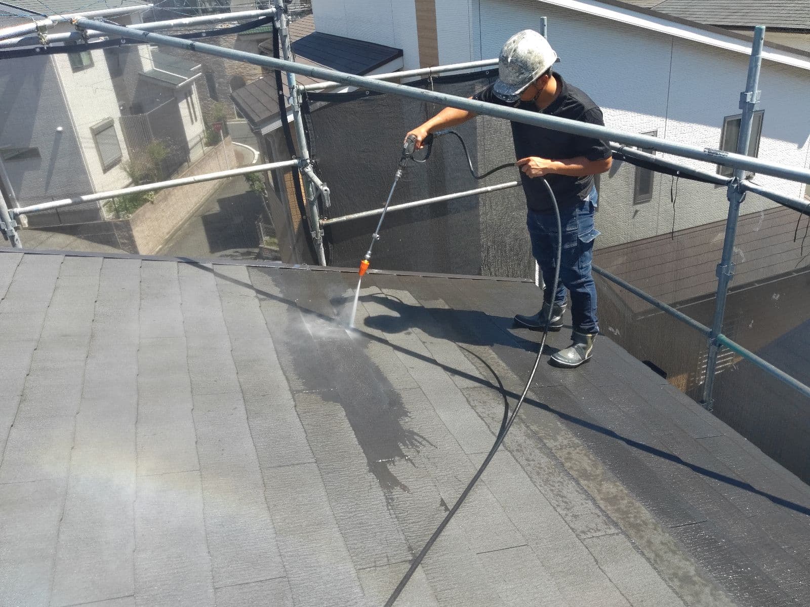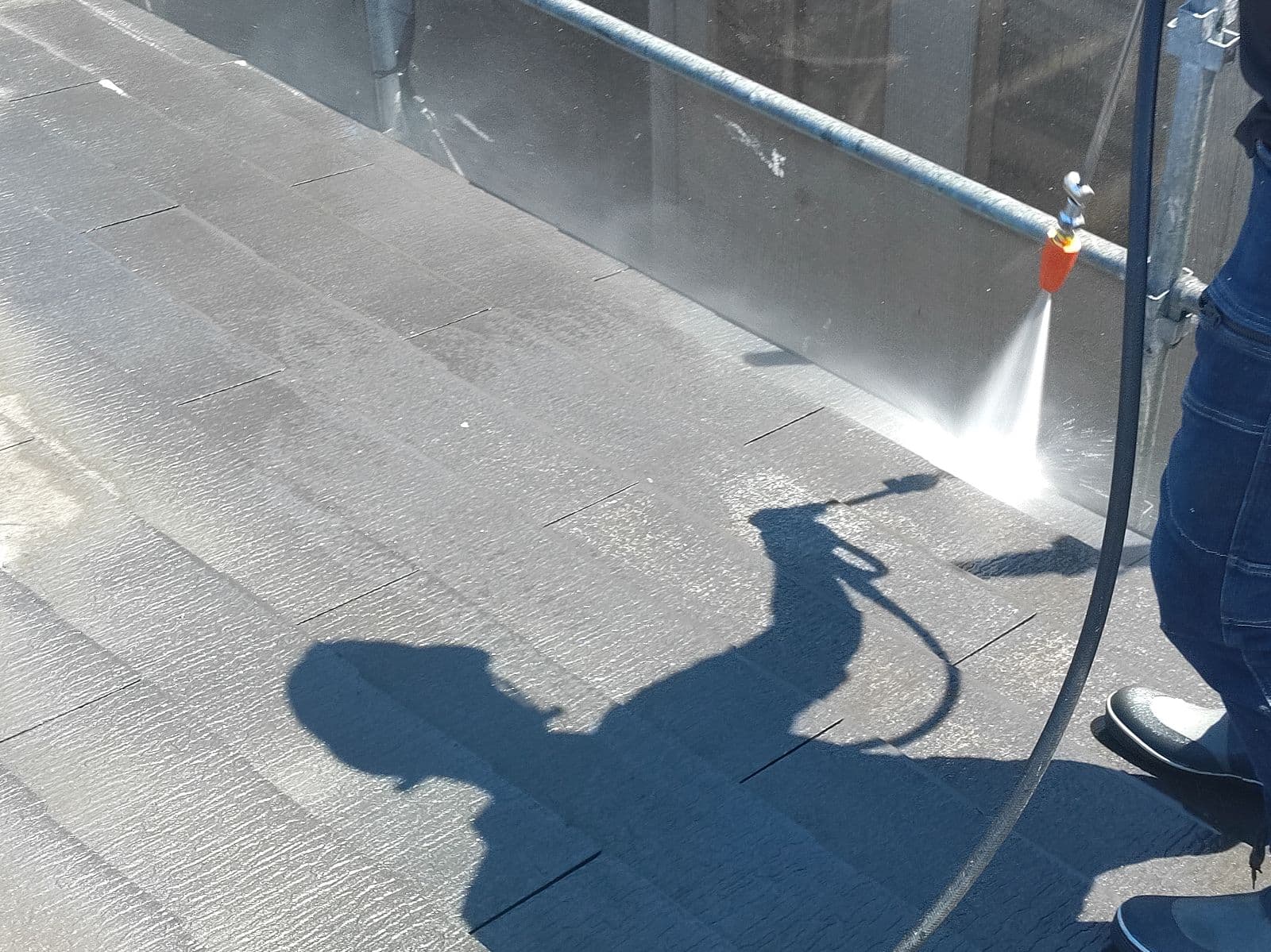 高圧洗浄にて旧塗膜や汚れをしっかり落としております!