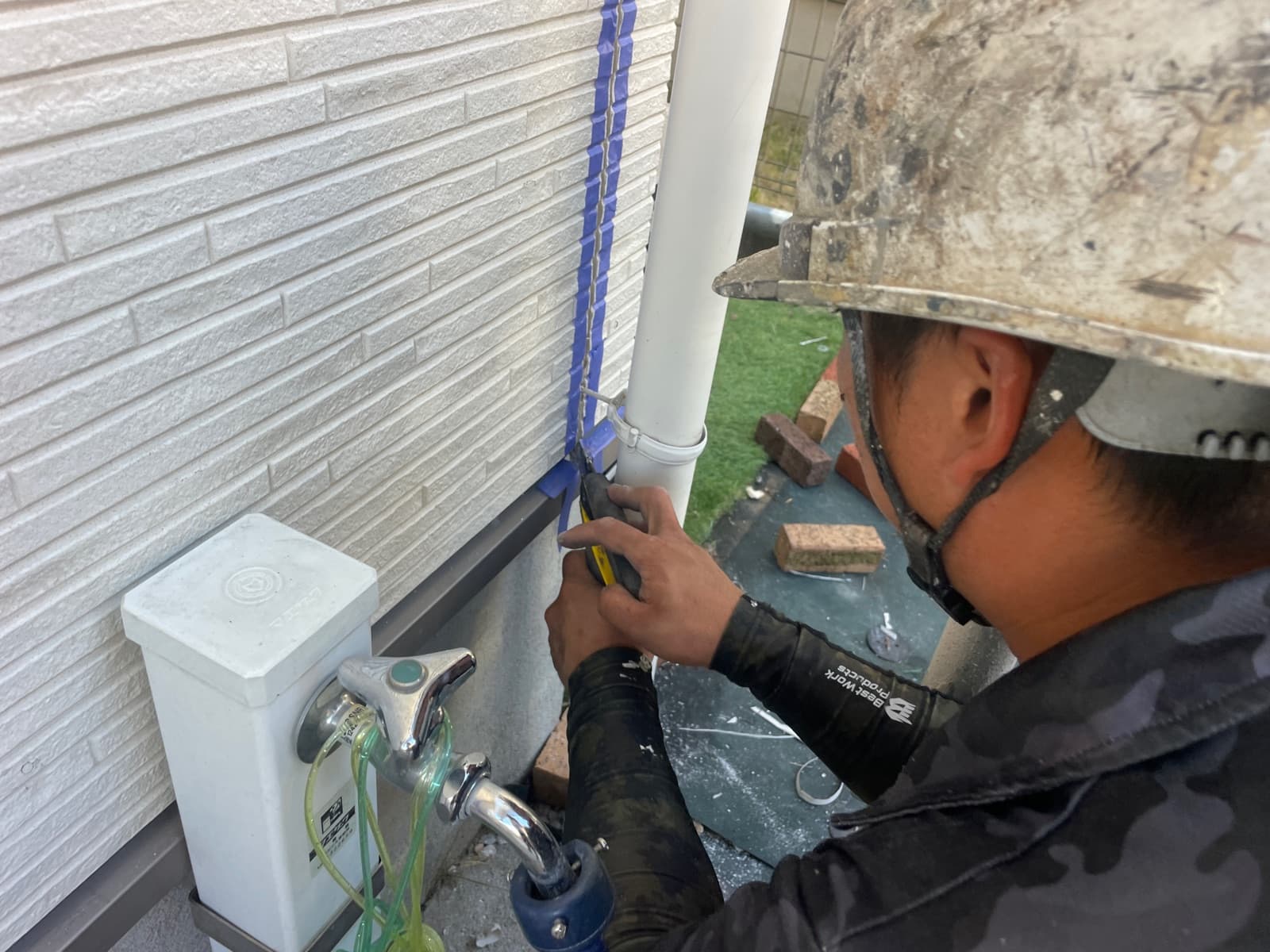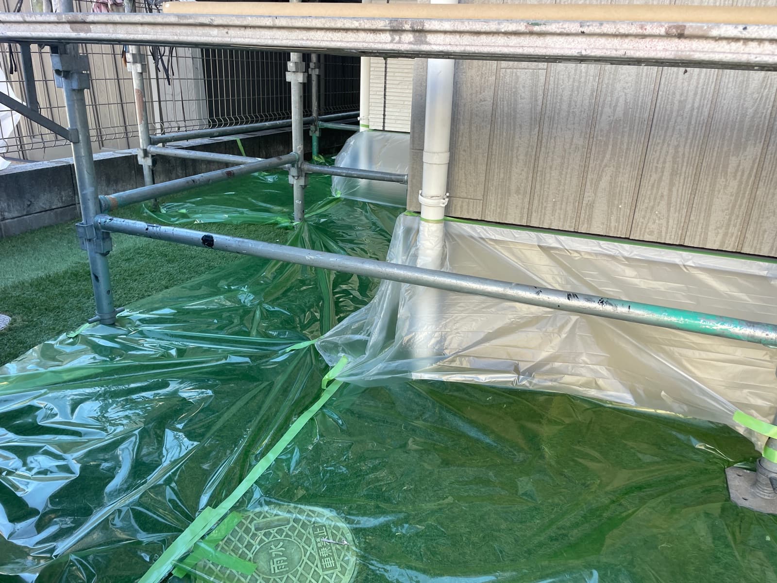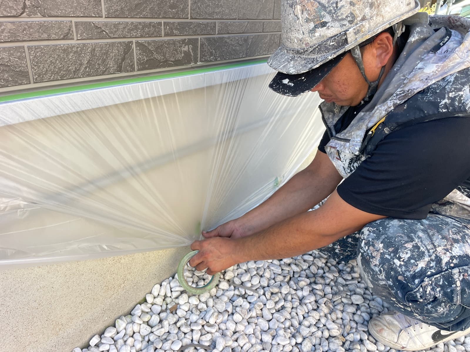 本日は付帯部塗装、養生バラシをさせて頂いております。