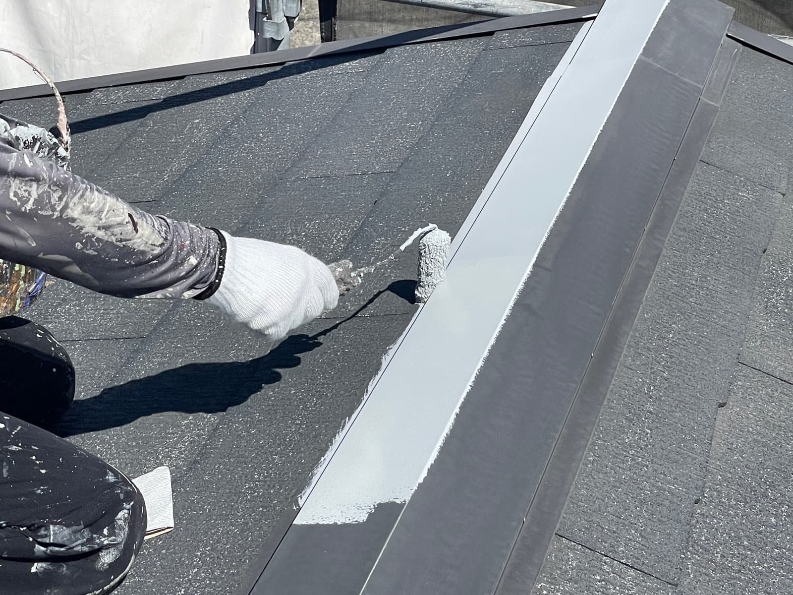 お屋根の板金は鉄ですので、しっかりと錆止めを塗布しております!