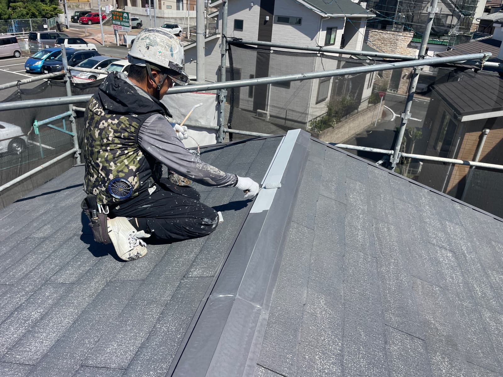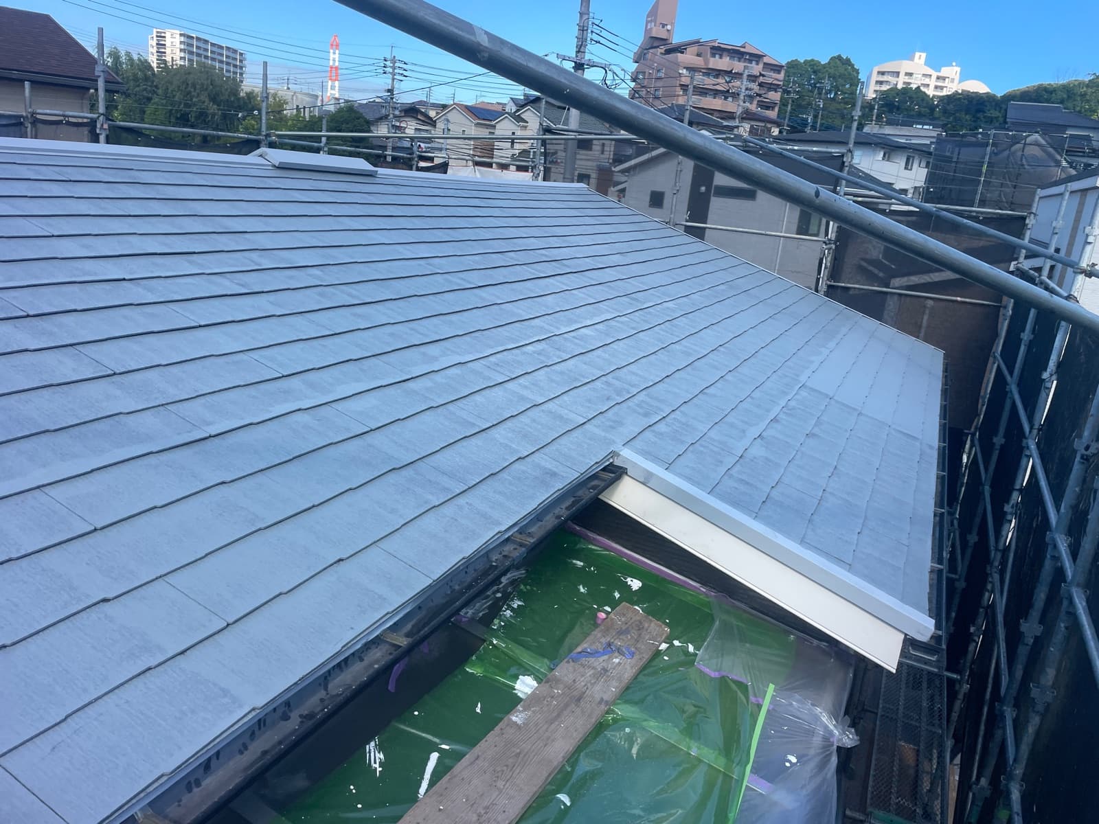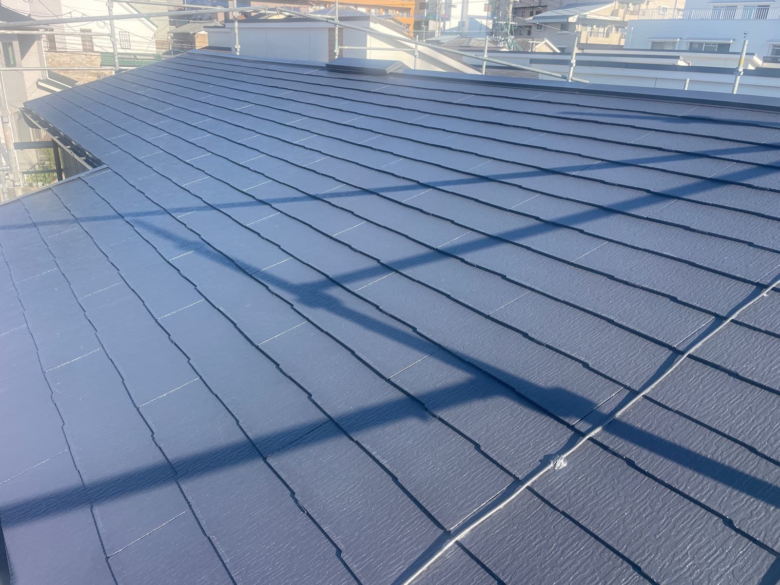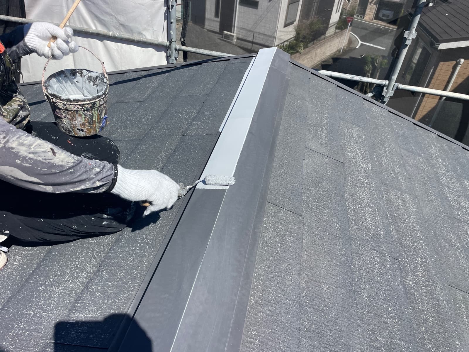 本日は屋根上塗り2回目、付帯部塗装、養生バラシをさせて頂いております。