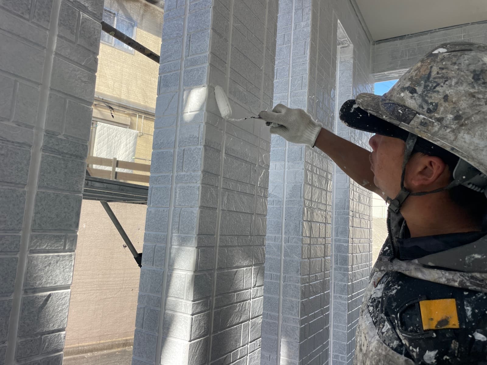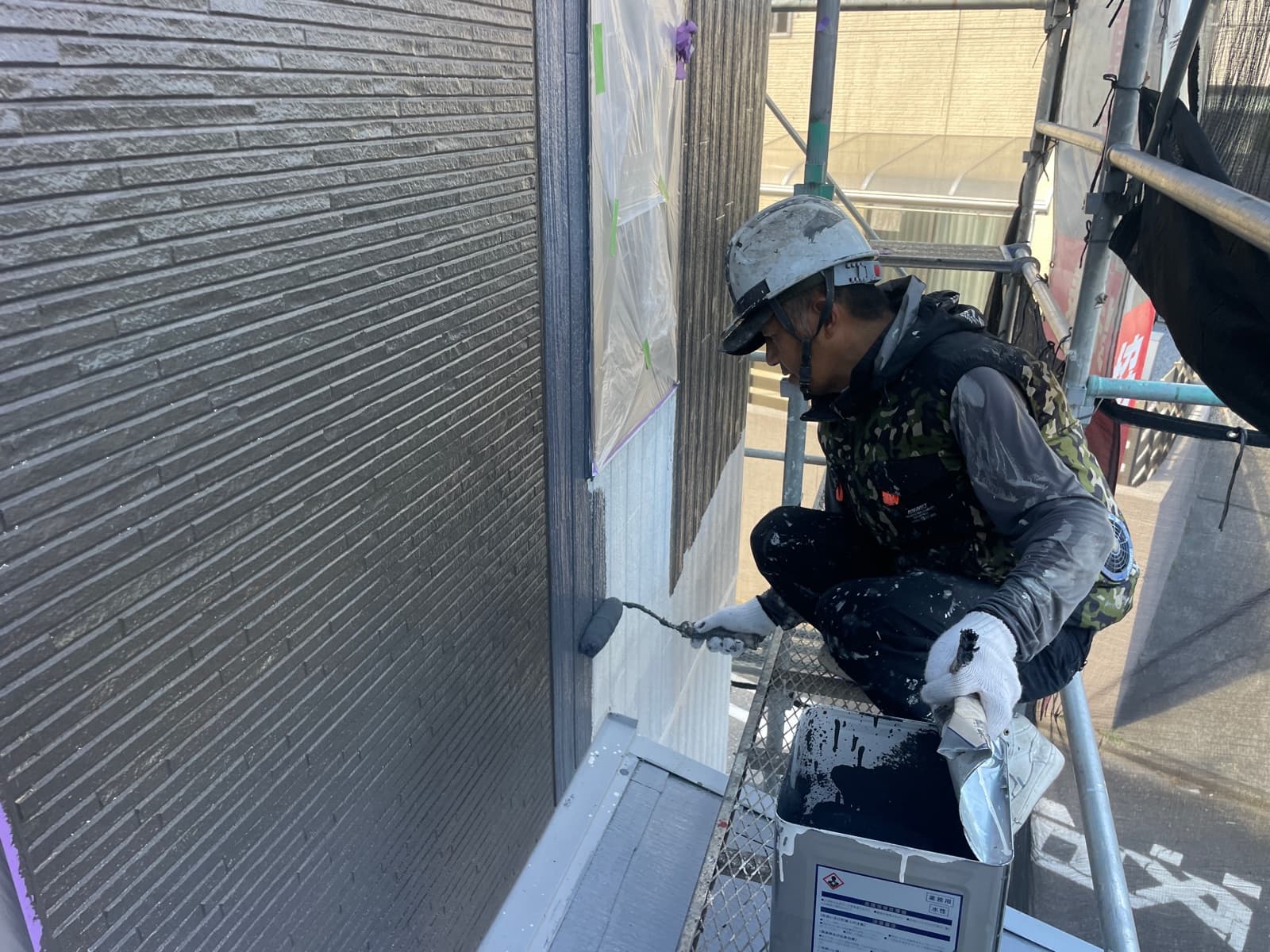 本日はシーリング作業、鉄部錆止めをおこなっております!
