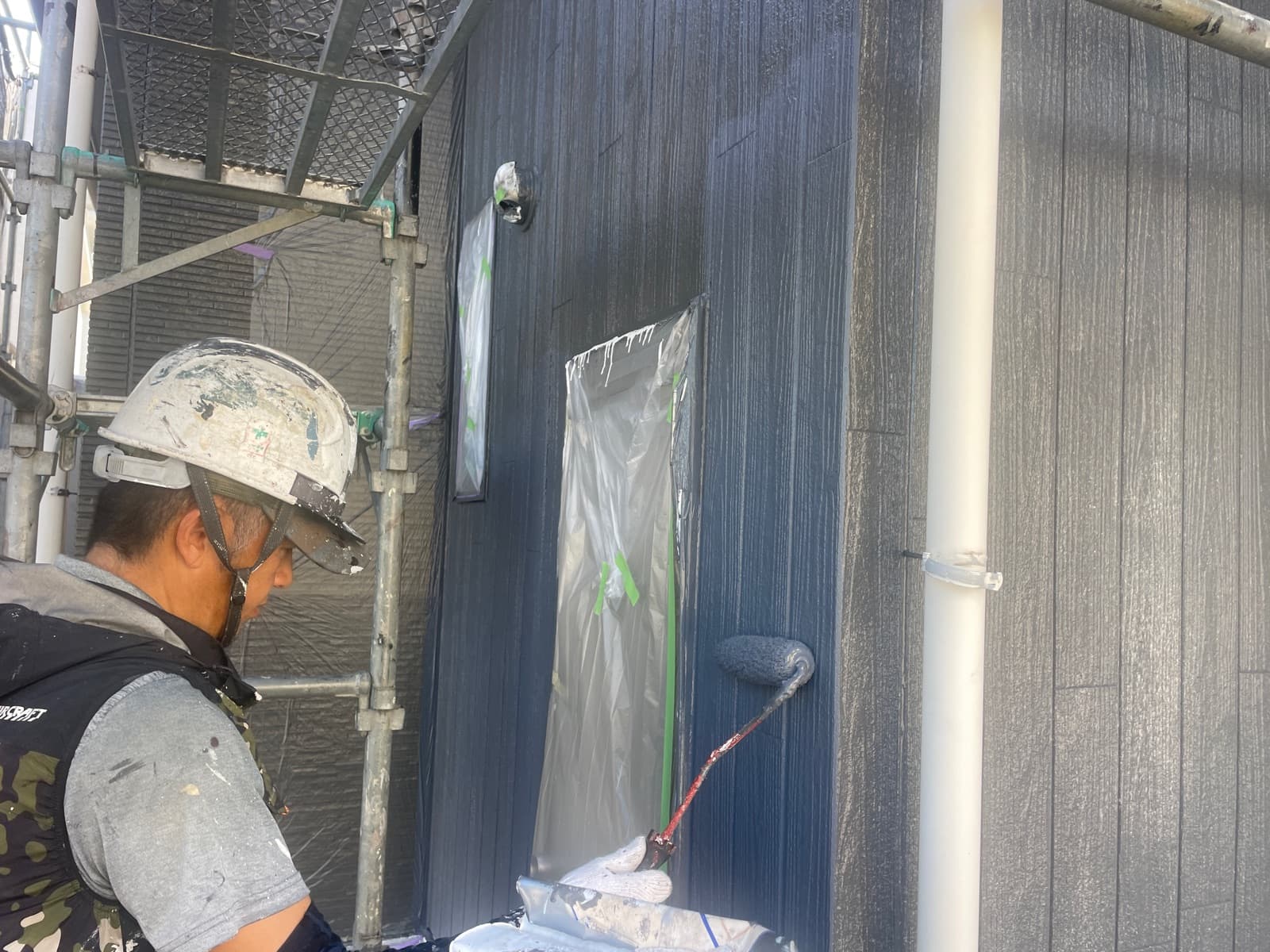 本日は軒天塗装、屋根下塗り2回目、外壁下塗り、外壁中間検査をさせて頂いております。