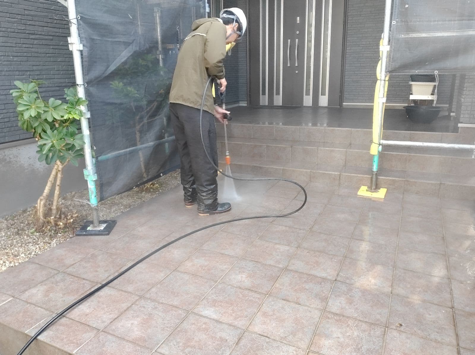 施工中のゴミやシーリングの撤去カスなどを掃除して参ります!