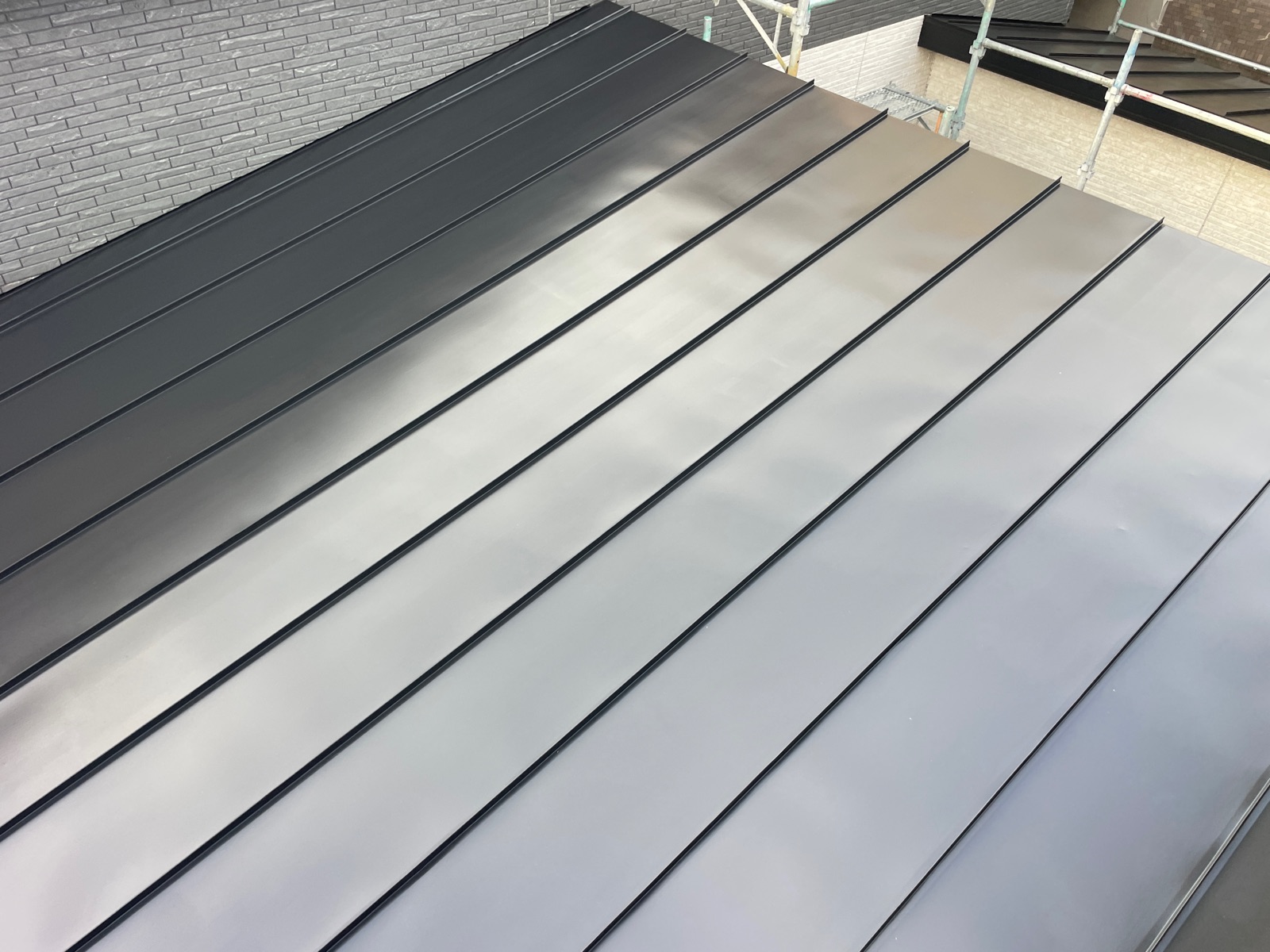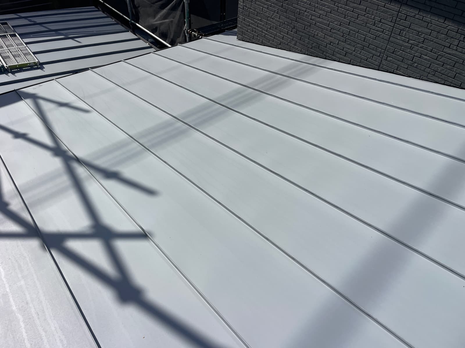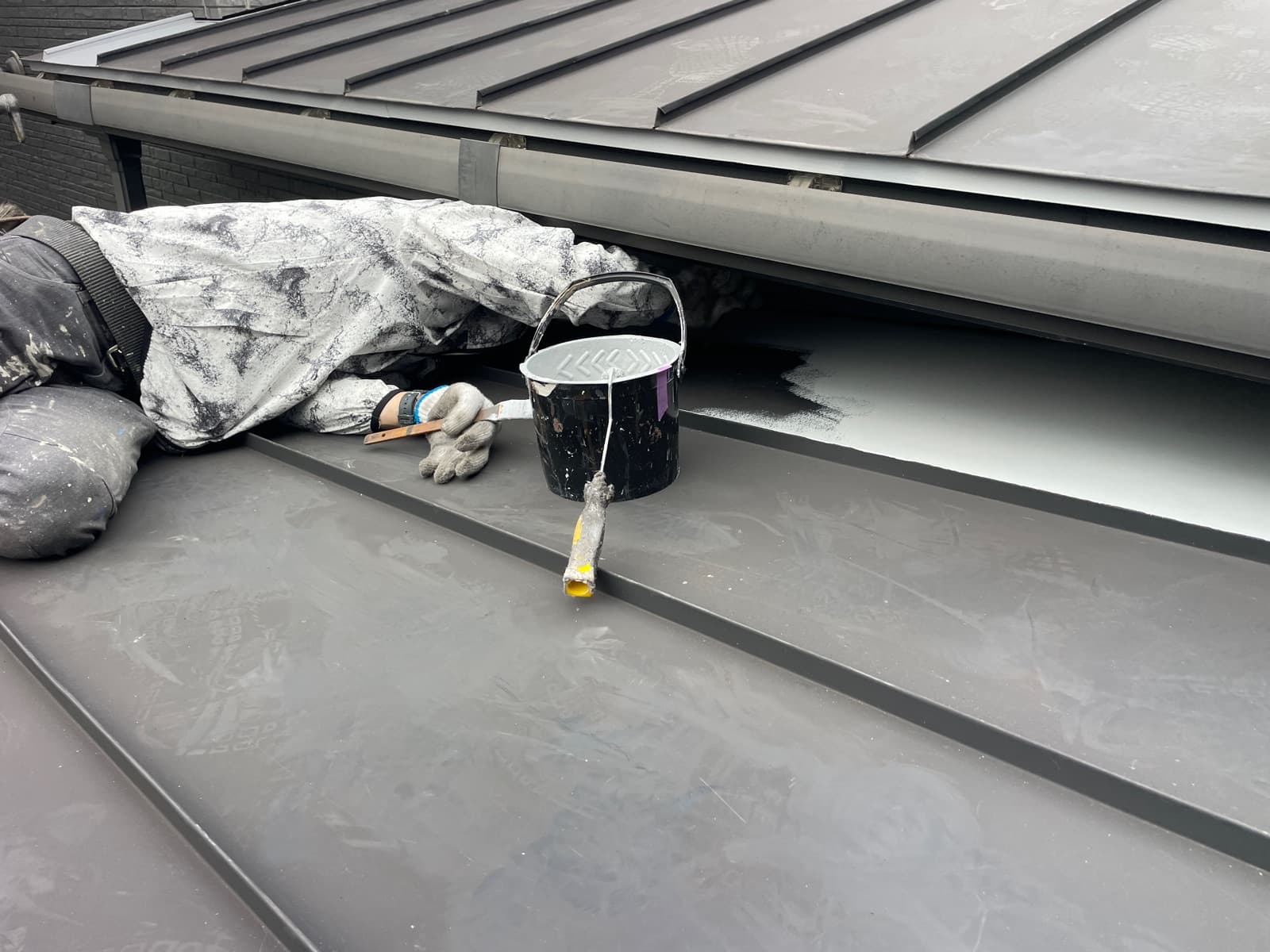 本日は基礎塗装、ガルバリウム屋根上塗り1回目をさせて頂いております。