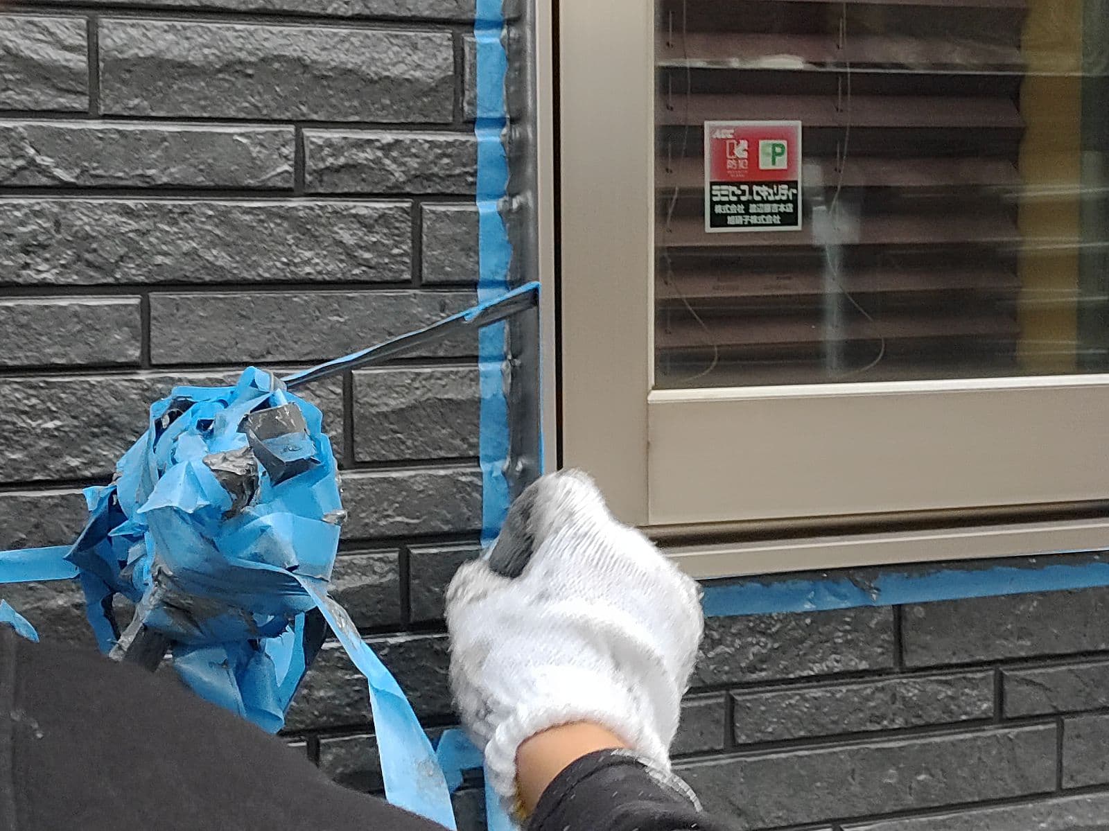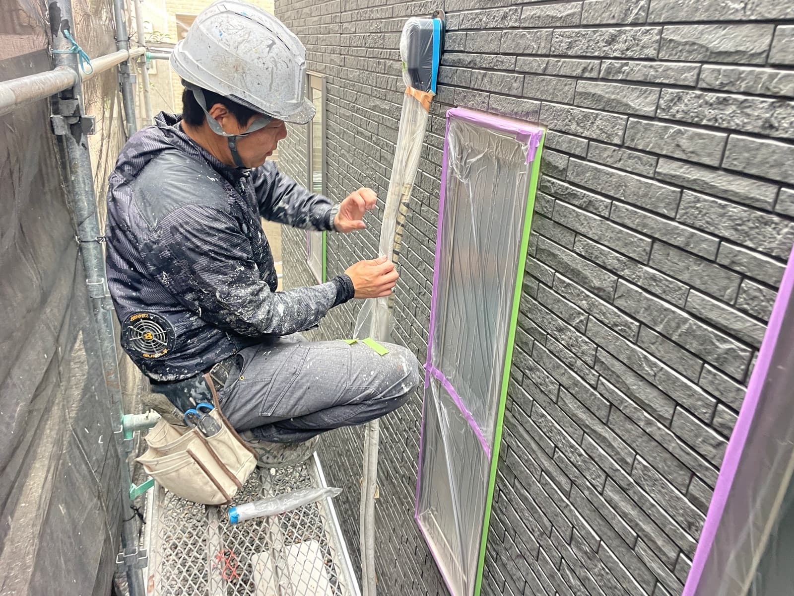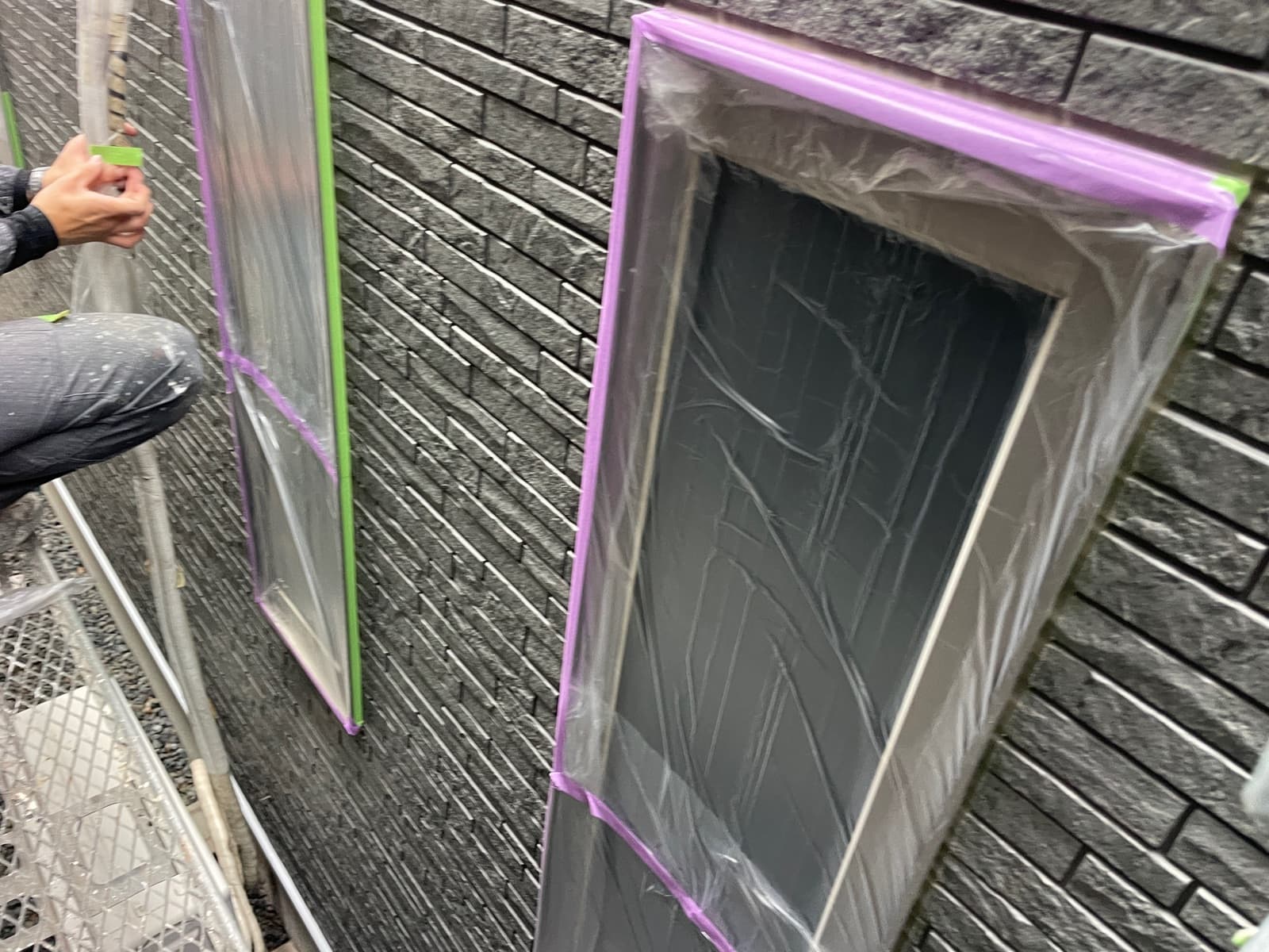 養生とは、窓や工程の後半で塗装する箇所をビニールで覆う作業です!