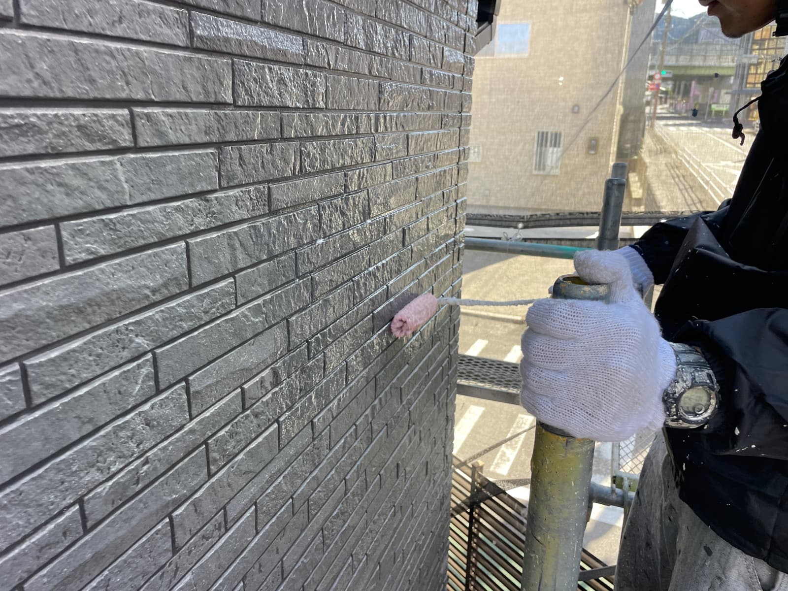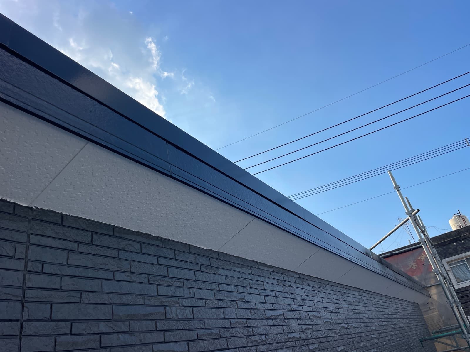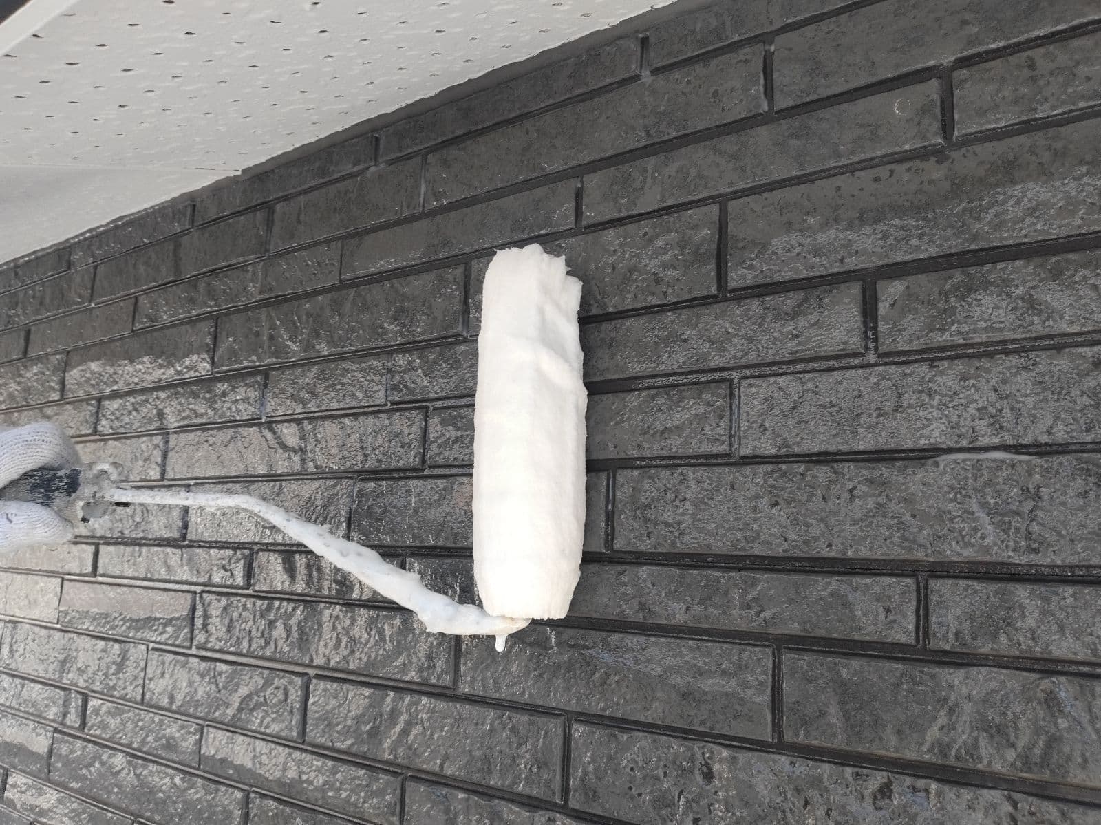 本日は塀の塗装、屋根上塗り2回目を行っております!
