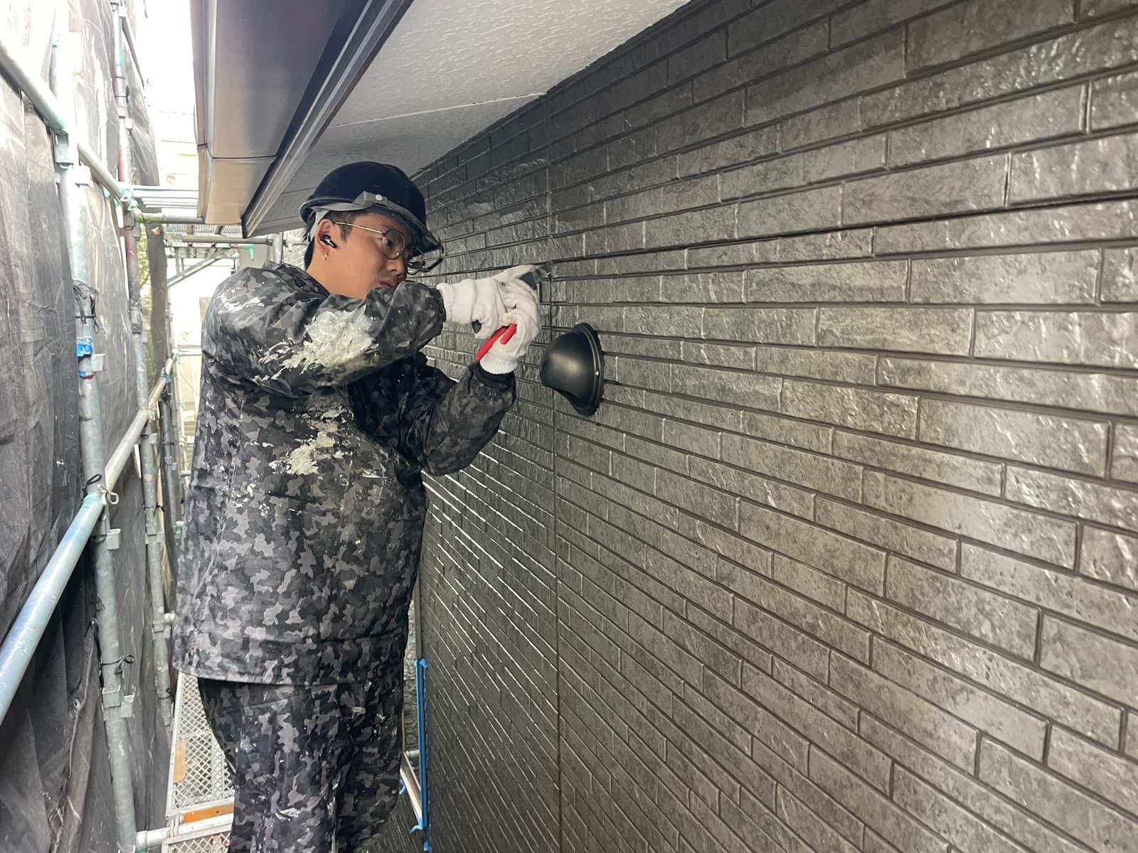 打ち替えの箇所は、撤去⇒清掃⇒養生⇒プライマー⇒シーリング打ち⇒ヘラ押さえ⇒養生撤去