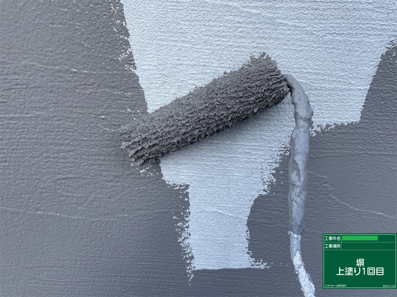 次回施工・・・外壁上塗り1回目、付帯塗装など