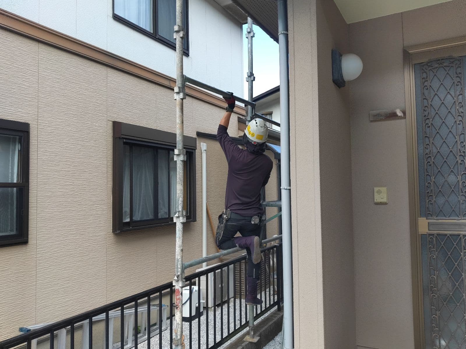 安全かつできるだけ塗装がしやすいような足場組んで頂いております!