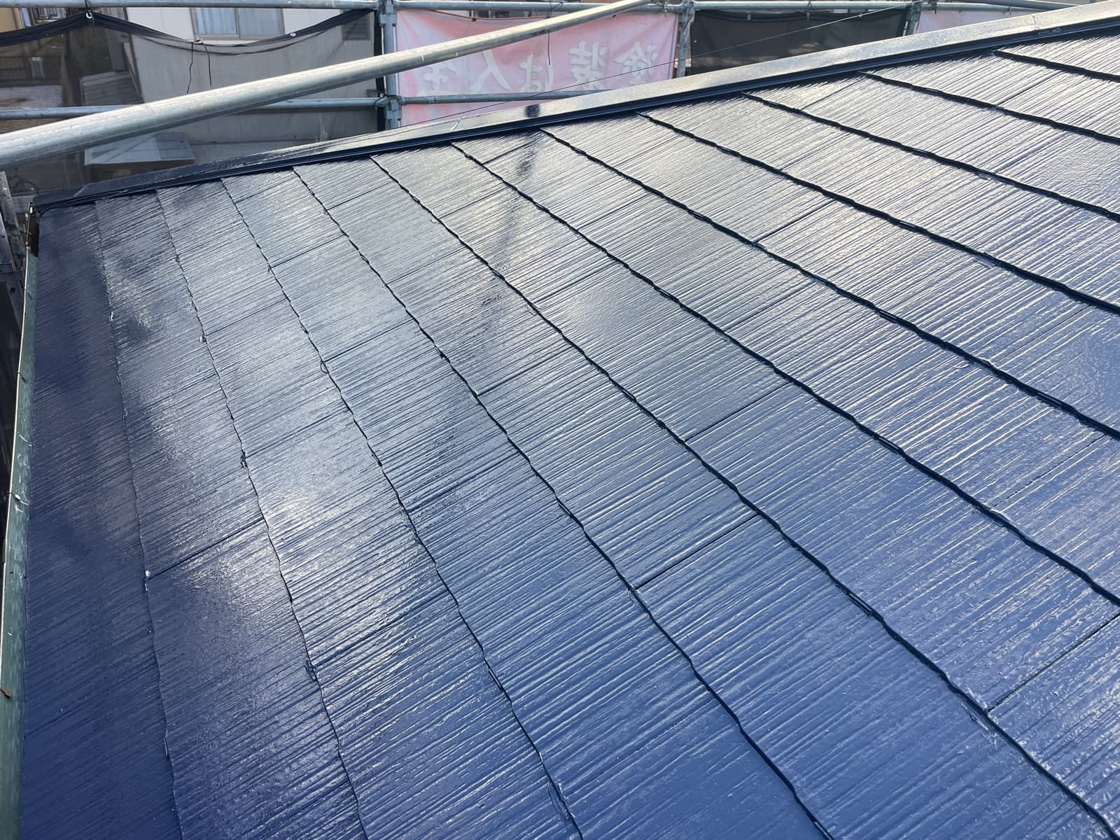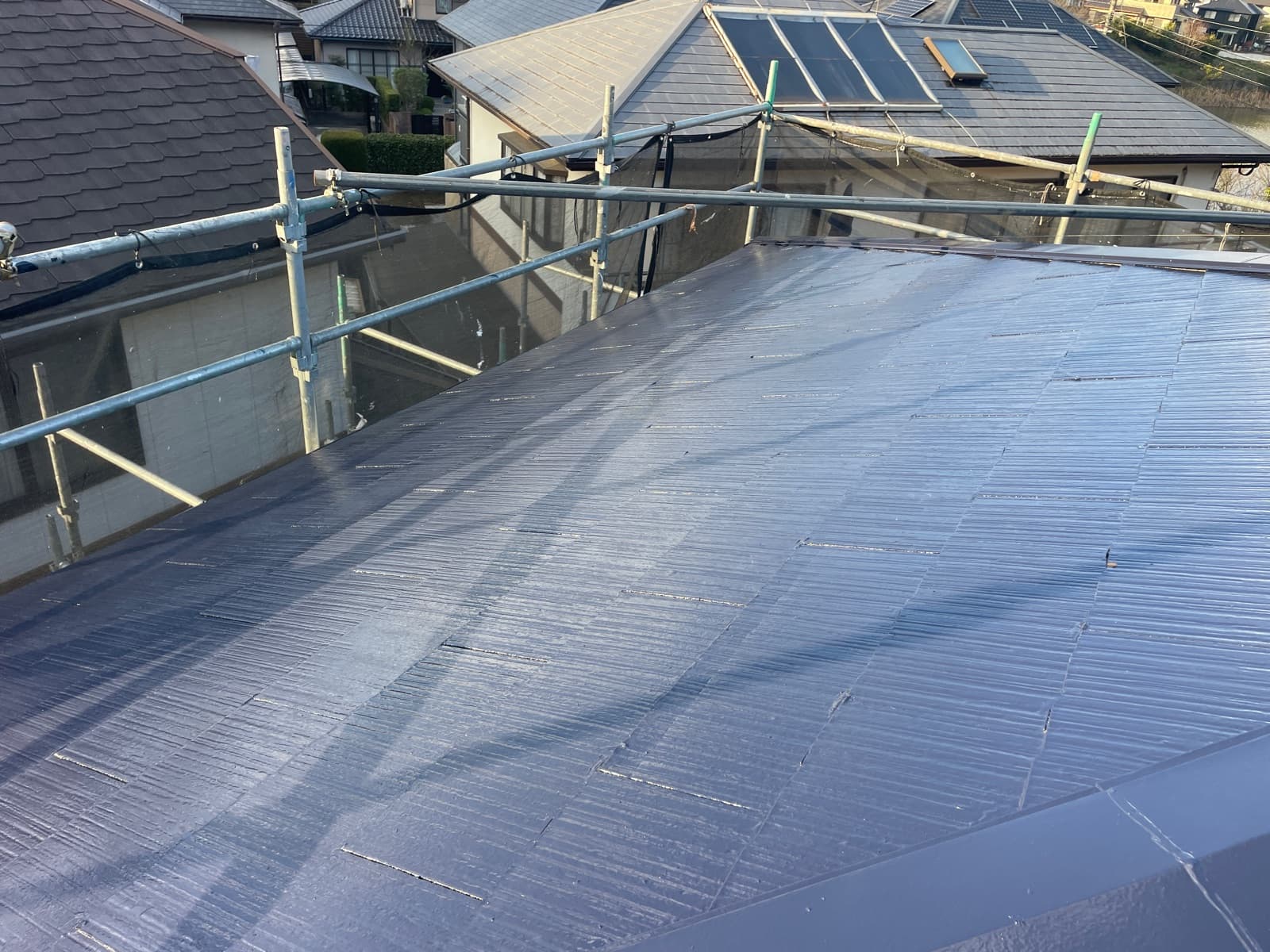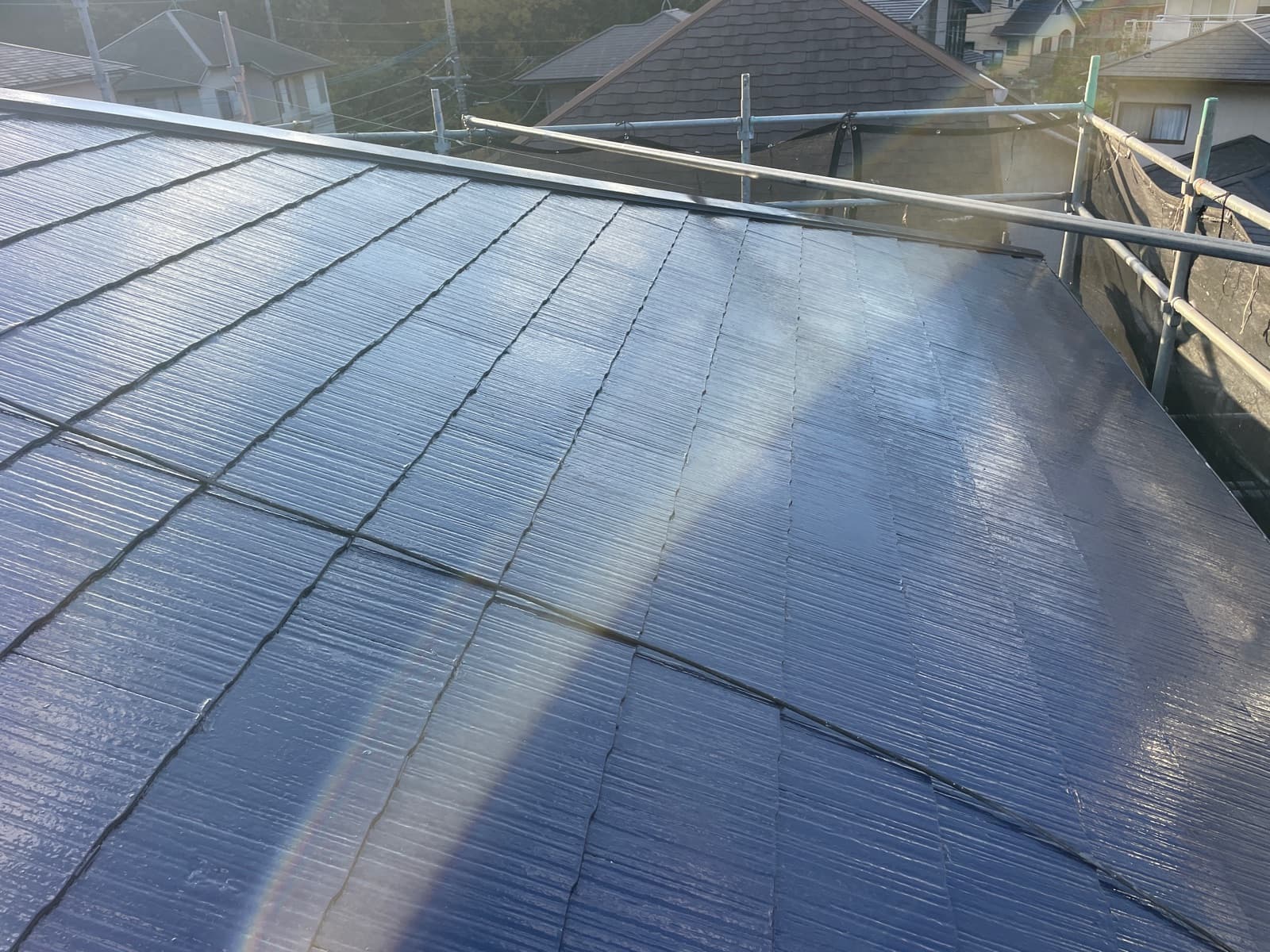お屋根は上塗り2回目をおこない、綺麗に仕上がりました!