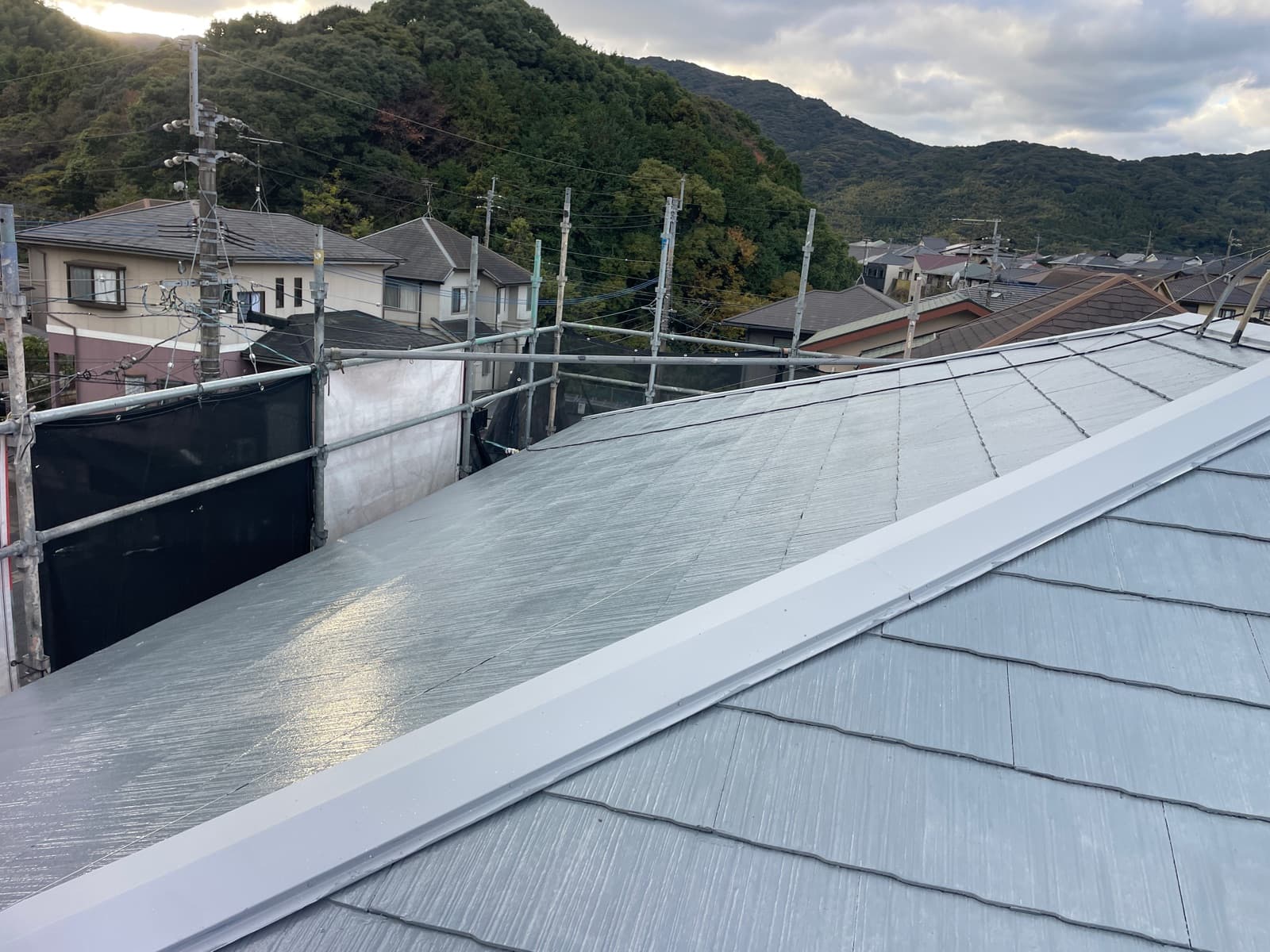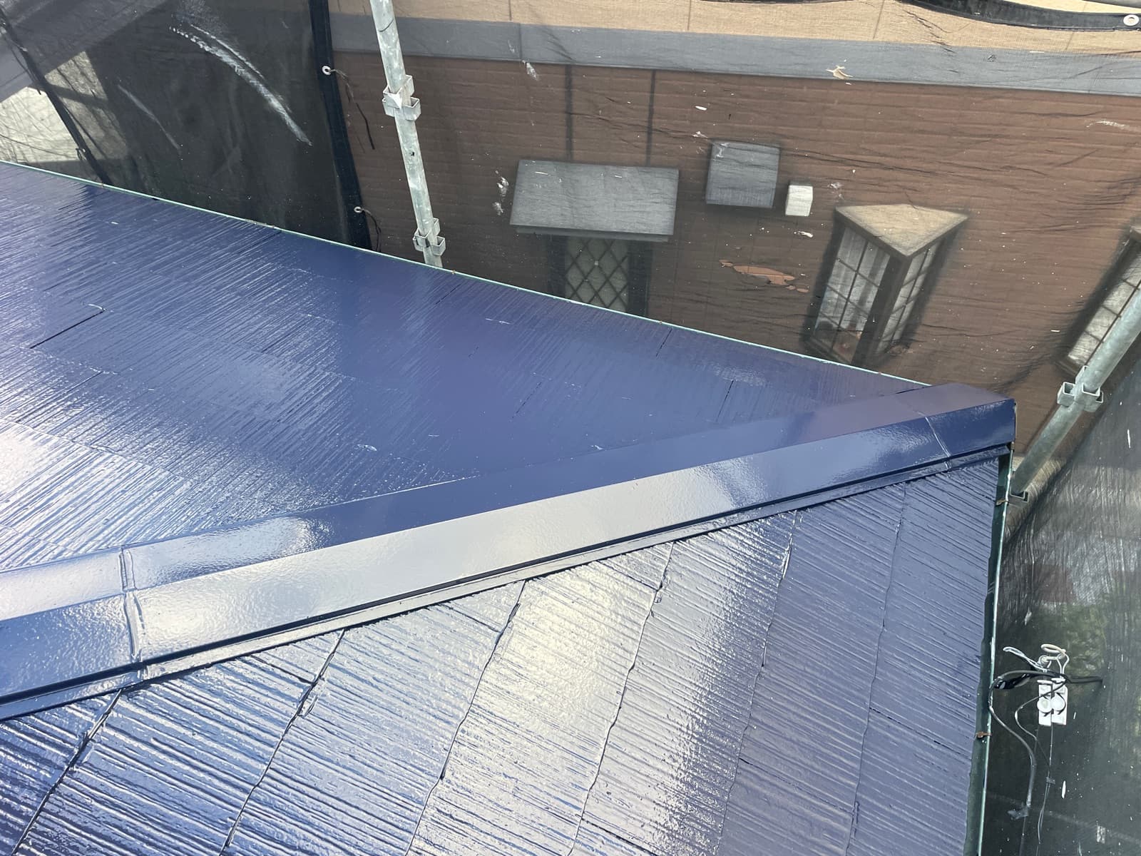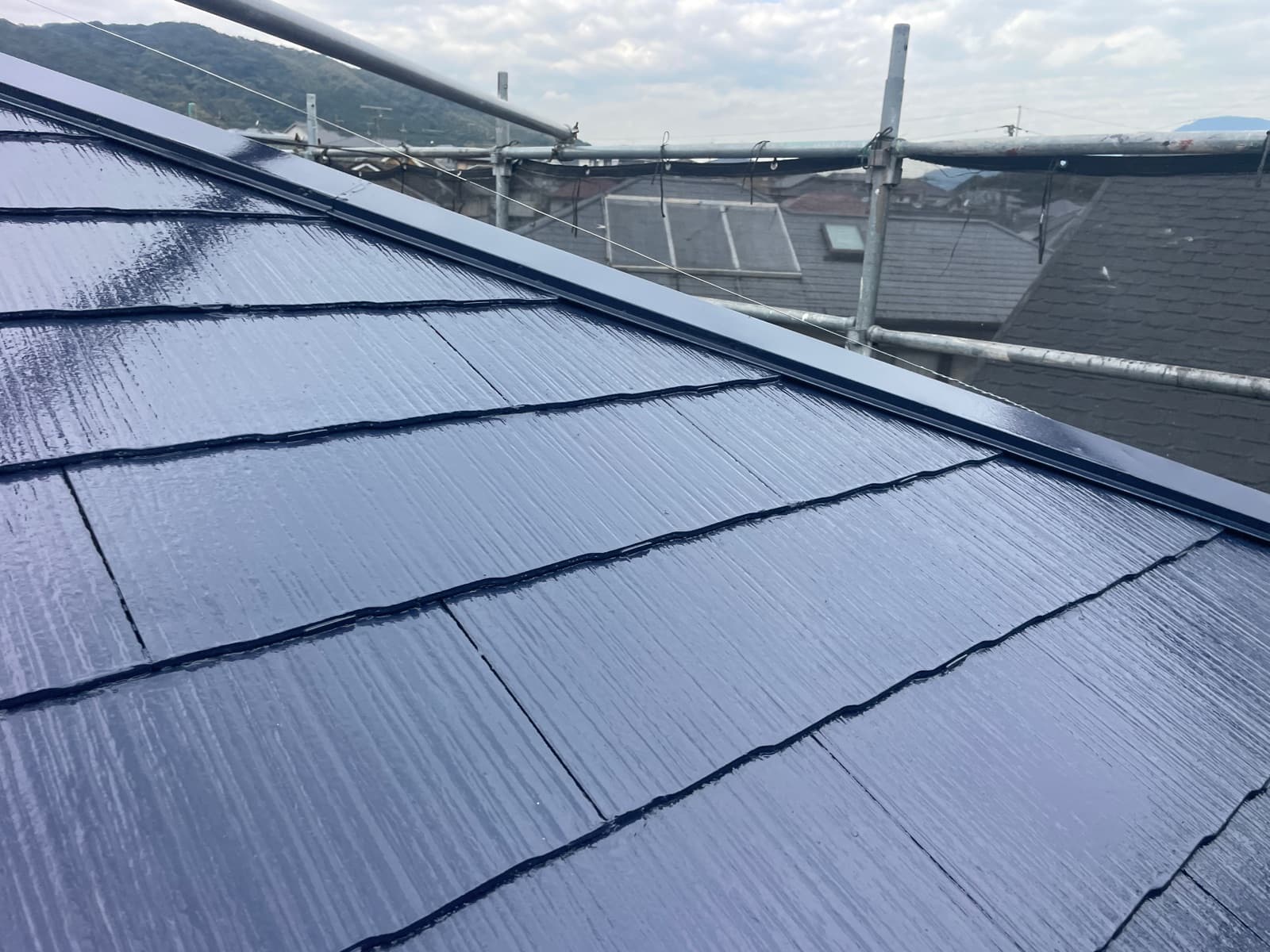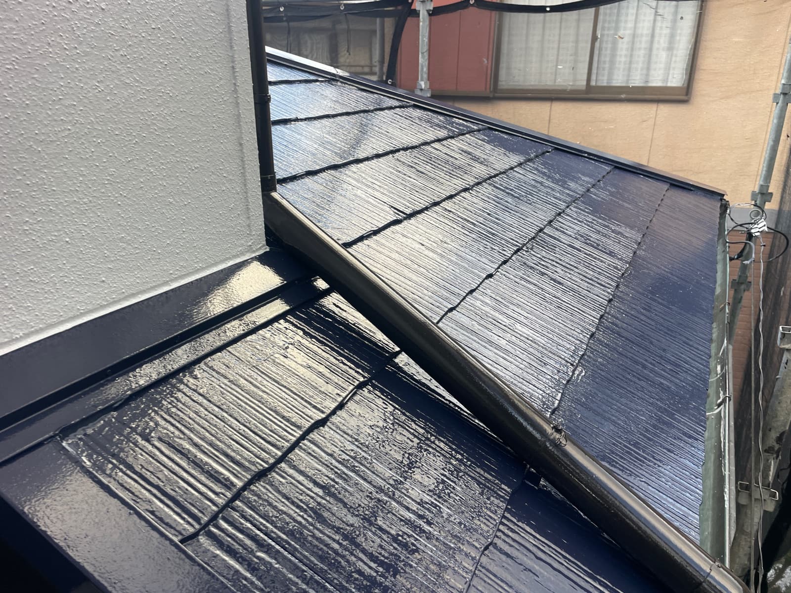 お屋根は上塗り2回目をおこない、綺麗に仕上がりました!