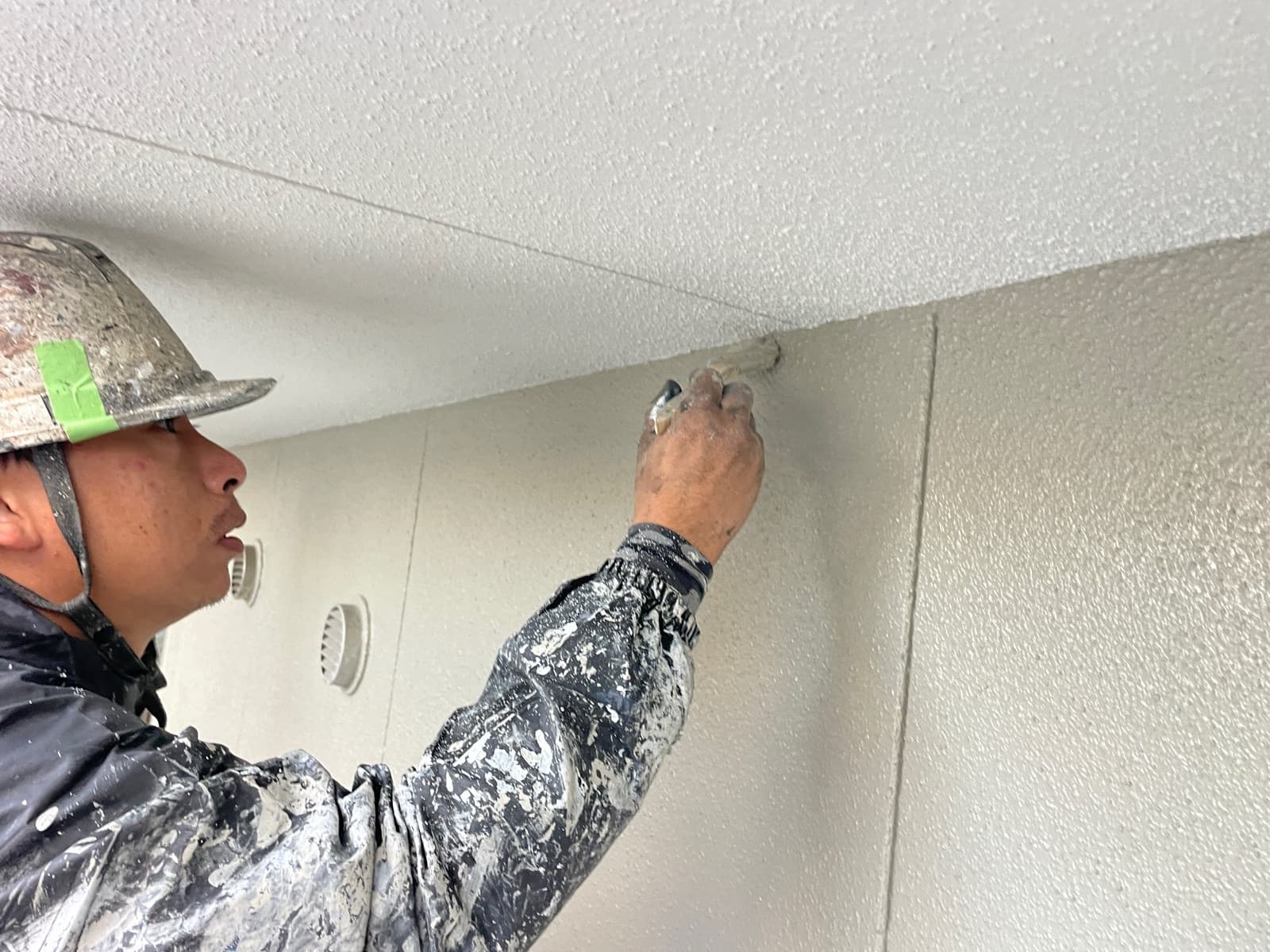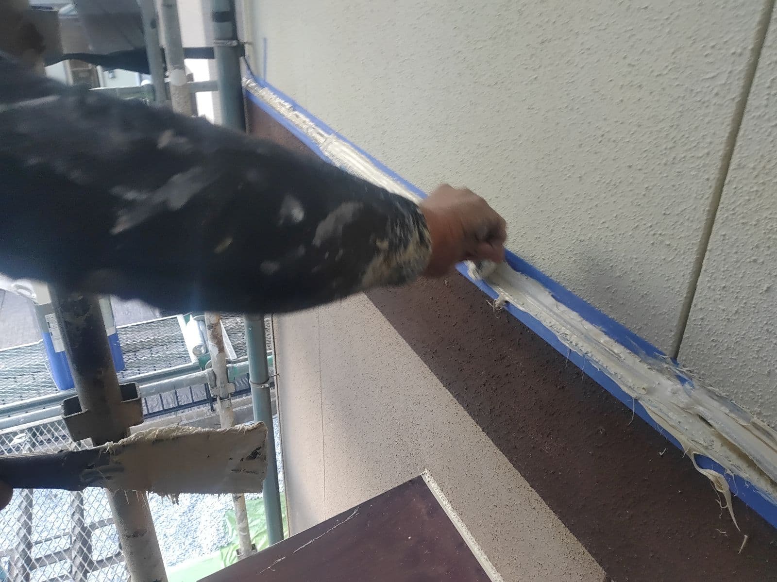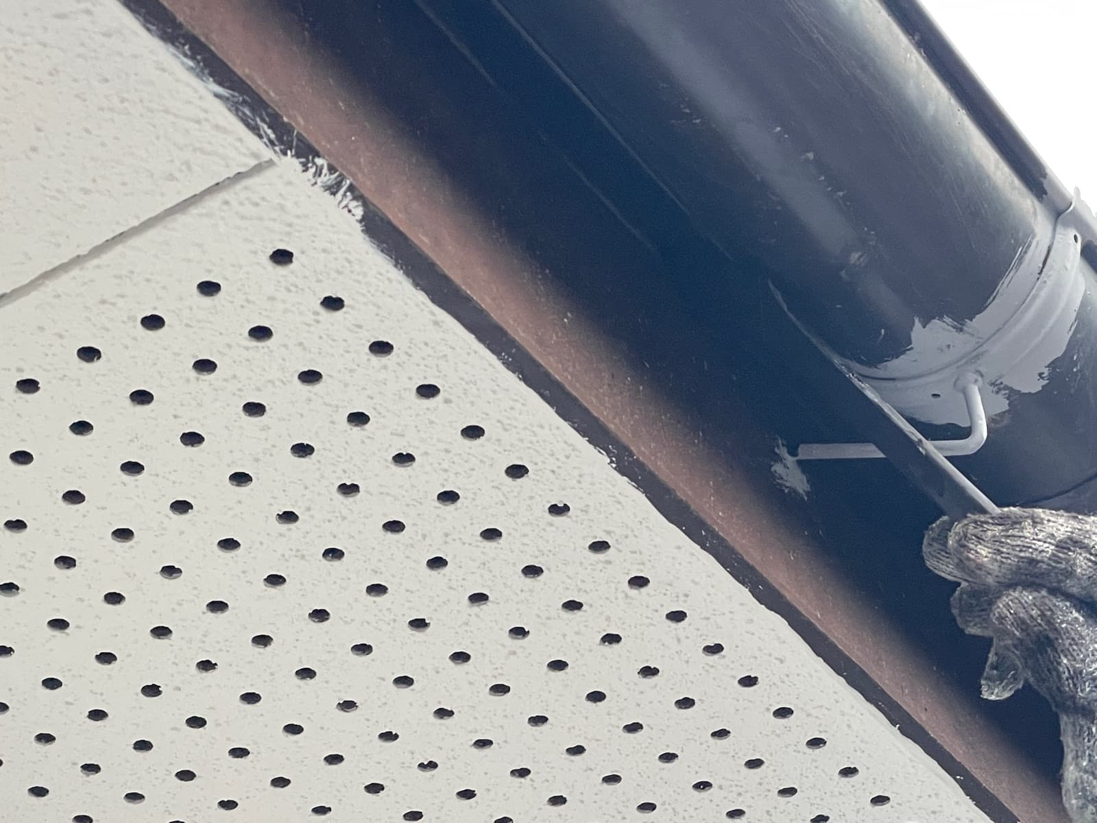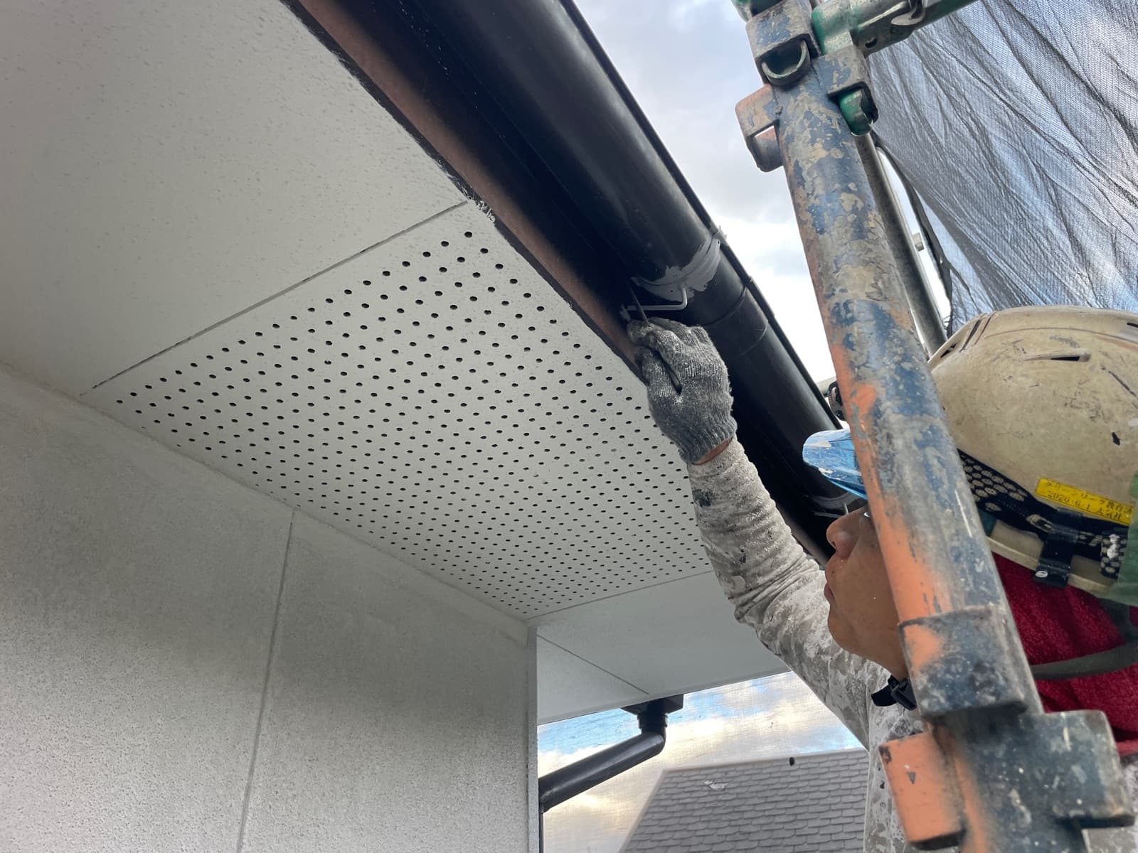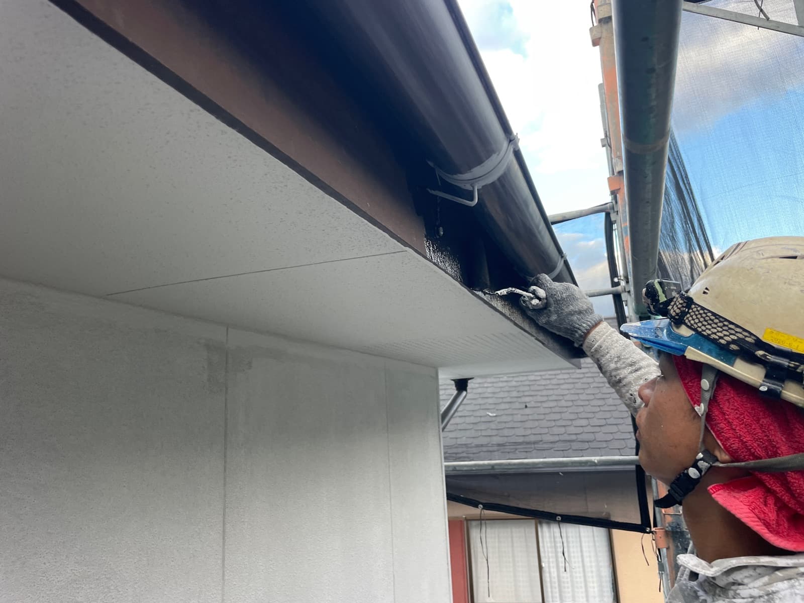 本日は鉄部ケレン、シーリング、軒天塗装をさせて頂いております。
