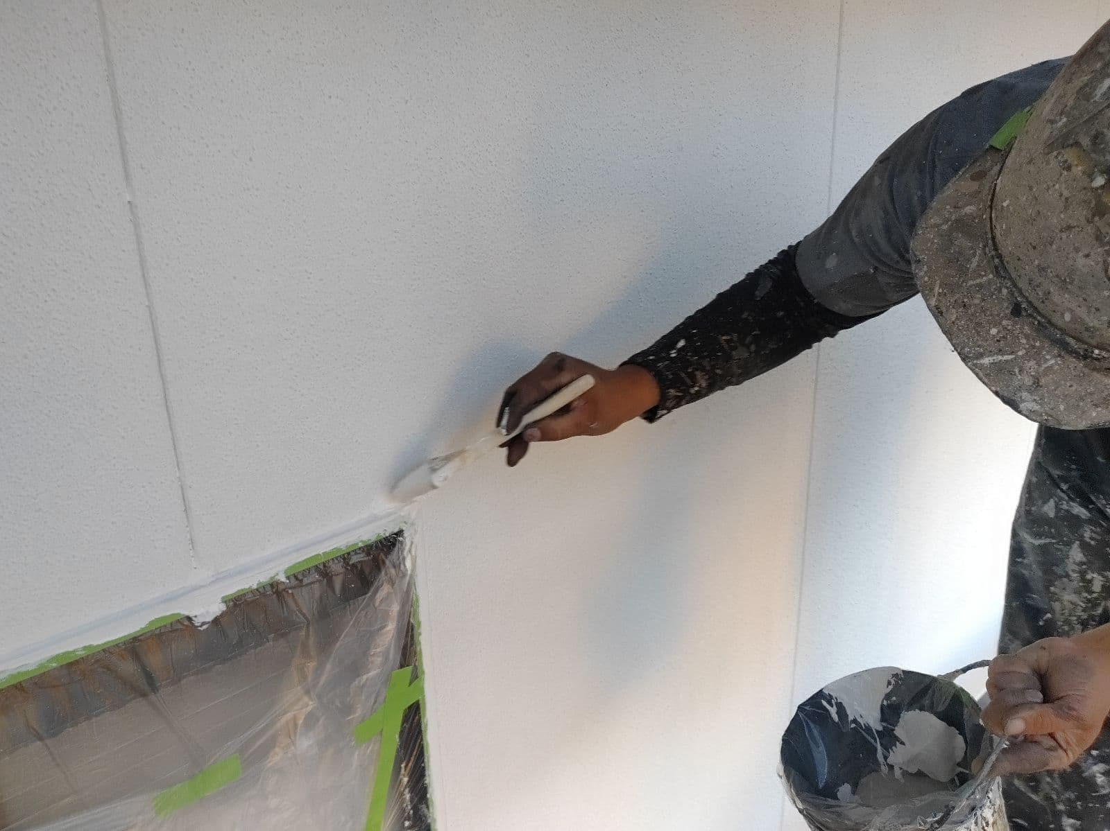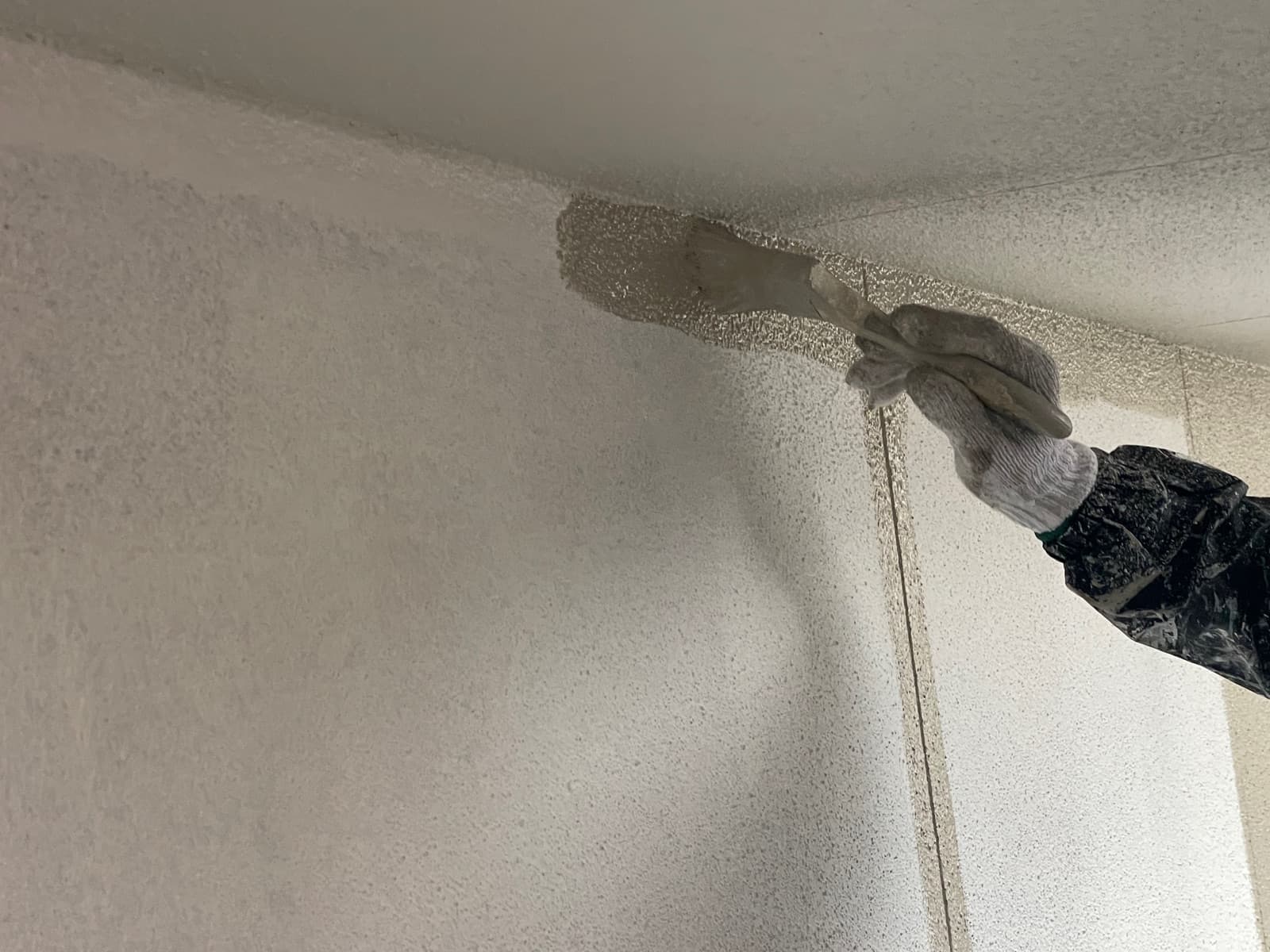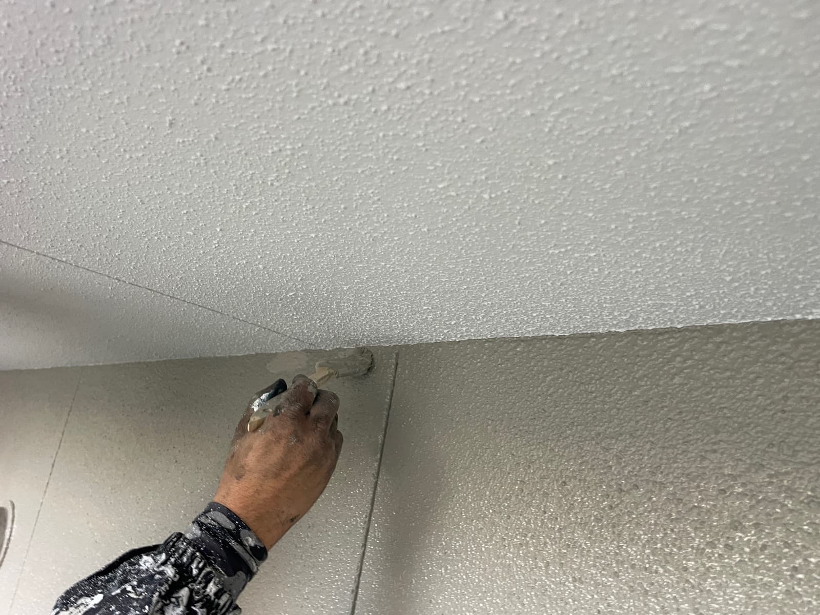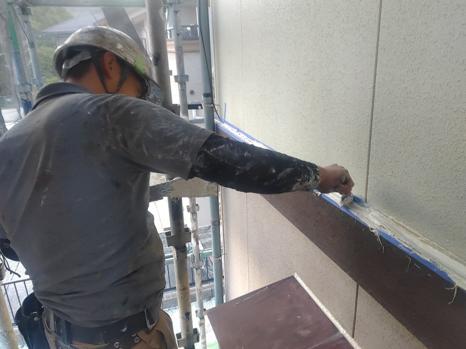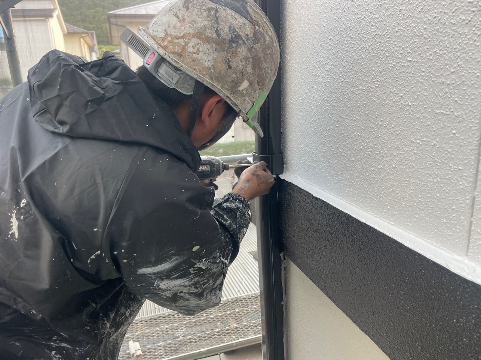 本日は鉄部ケレン、シーリング、軒天塗装をさせて頂いております。