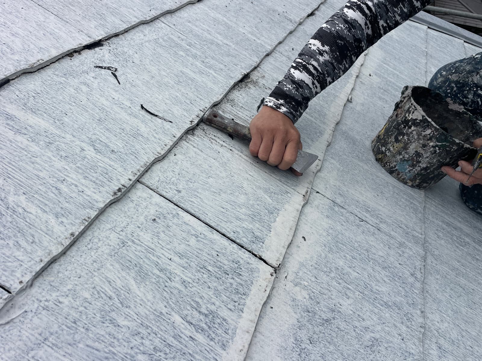 コロニアル屋根に部分的にシーリングが打たれておりましたので
