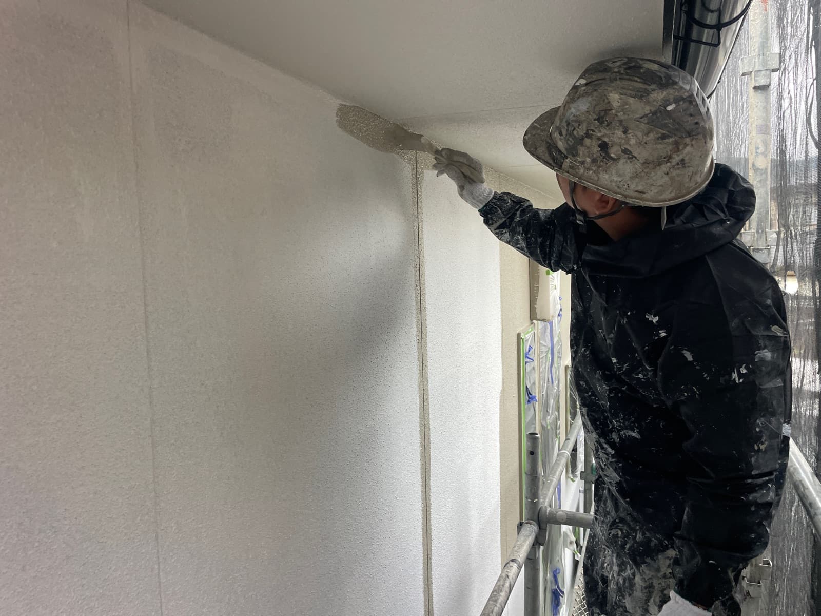 ●●外壁塗装 外壁下塗り1回目、付帯塗装