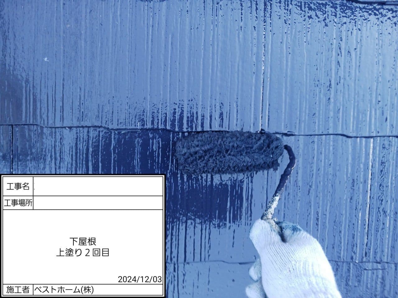 次回施工・・・下屋根上塗り2回目、付帯部塗装