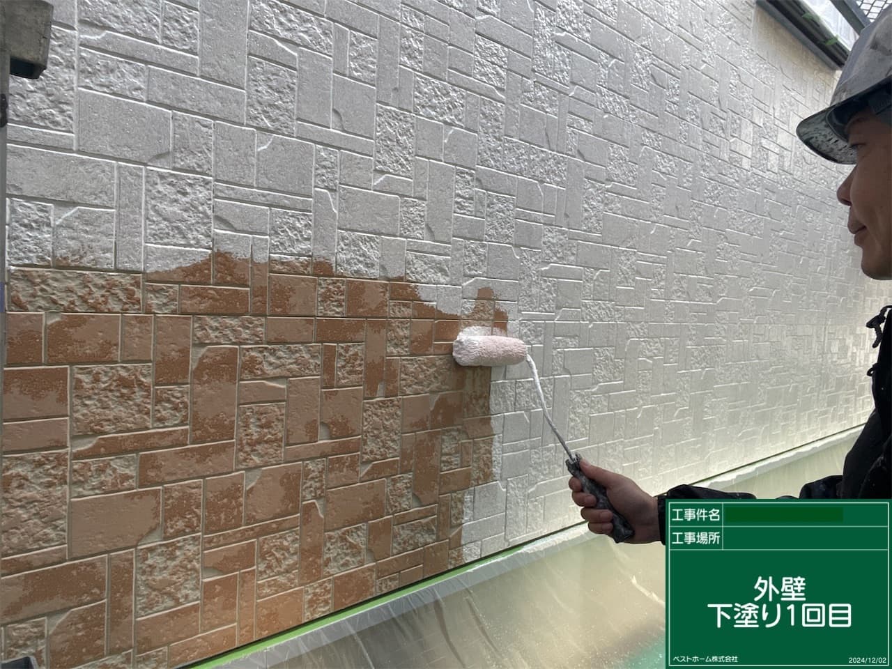 下塗りは下地と上塗り材の密着性を高める接着剤の様な役割がございます!