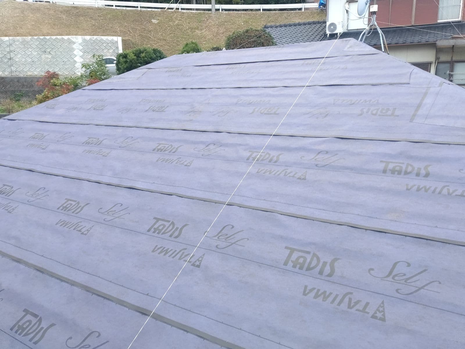 既存棟解体作業とルーフィングシート張りをおこなっております!