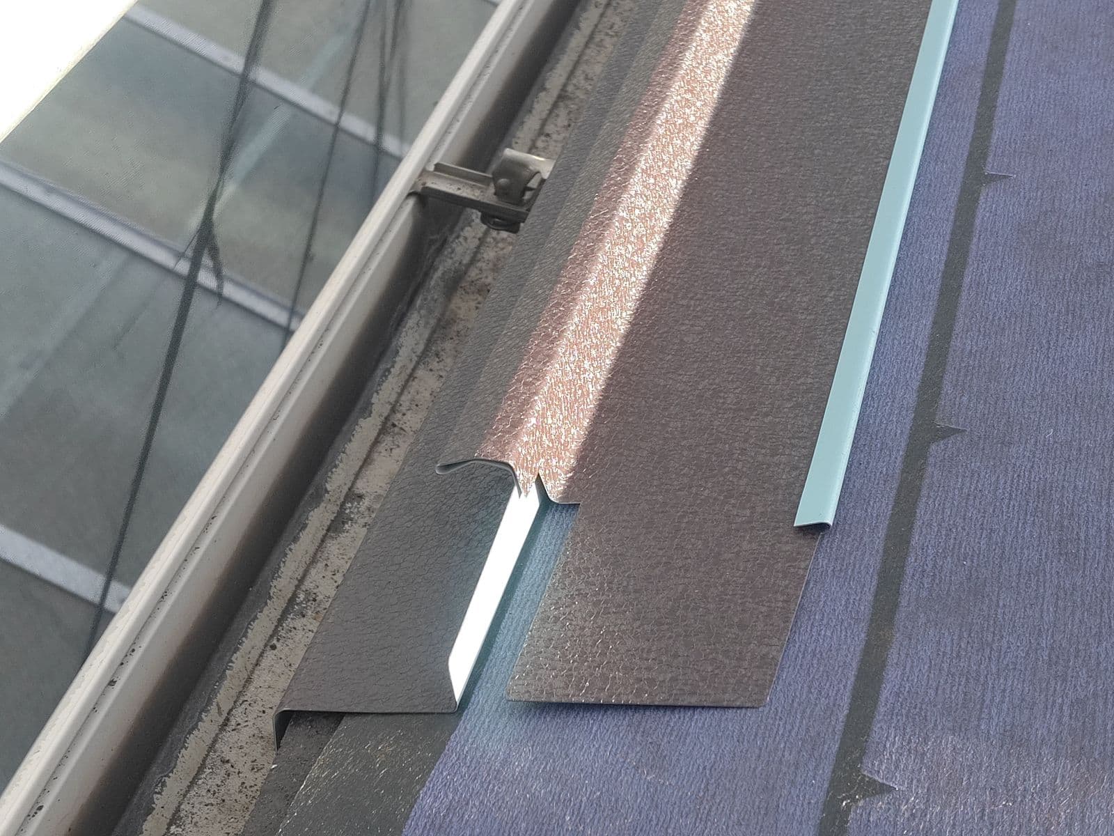 板金のお屋根は、屋根材と屋根材が引っかかるようになっており