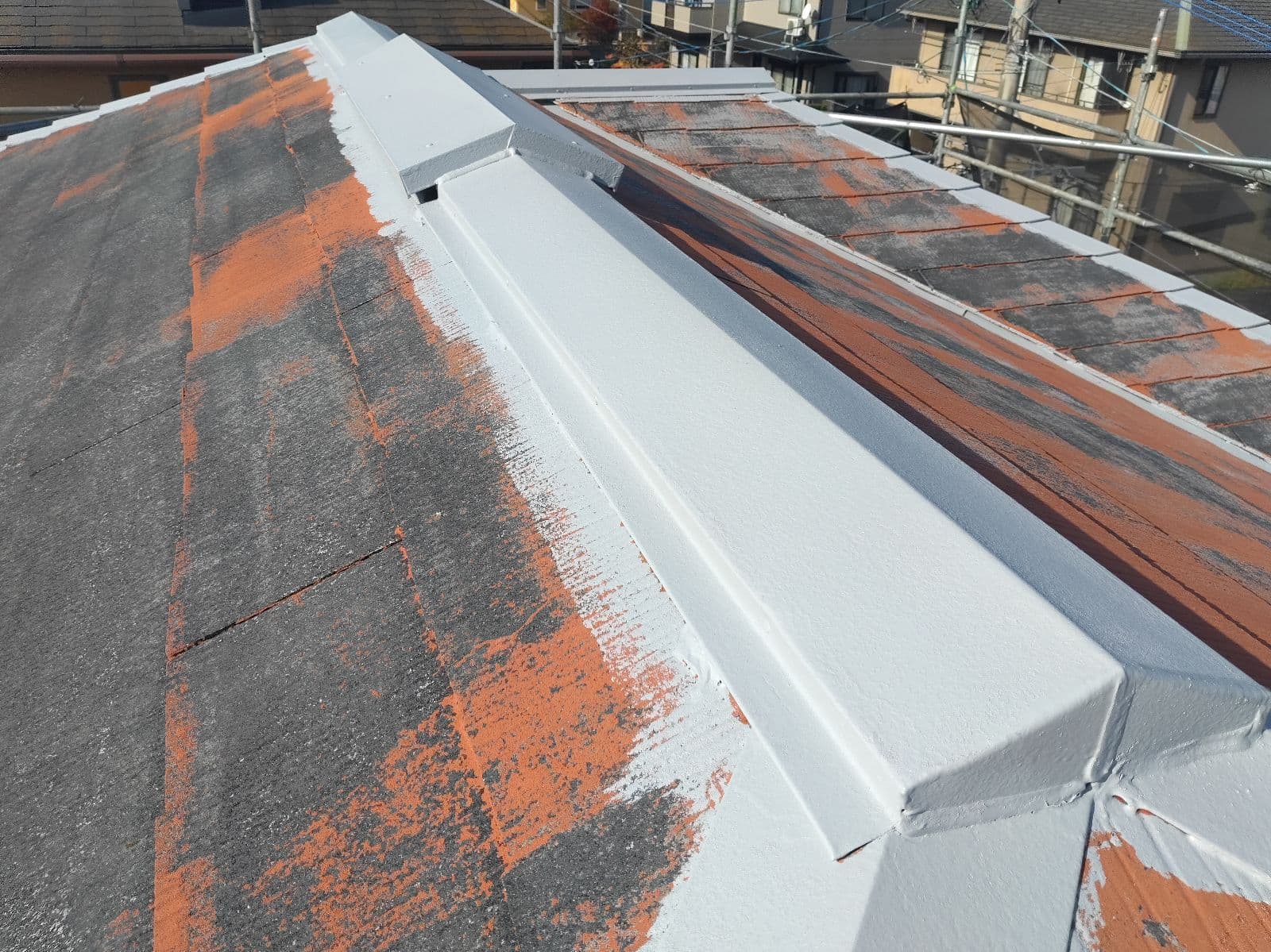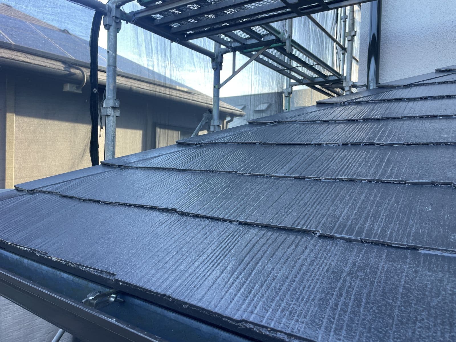 次回施工・・・屋根上塗り1回目、付帯塗装