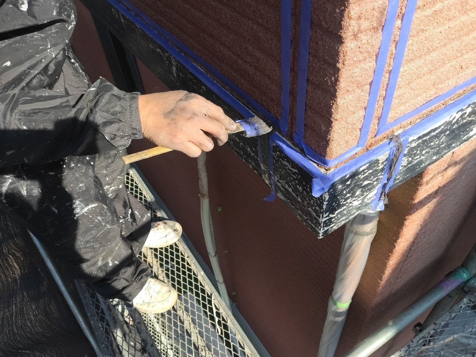 本日は鉄部錆止め、破風・幕板シーリングなどをさせて頂いております。