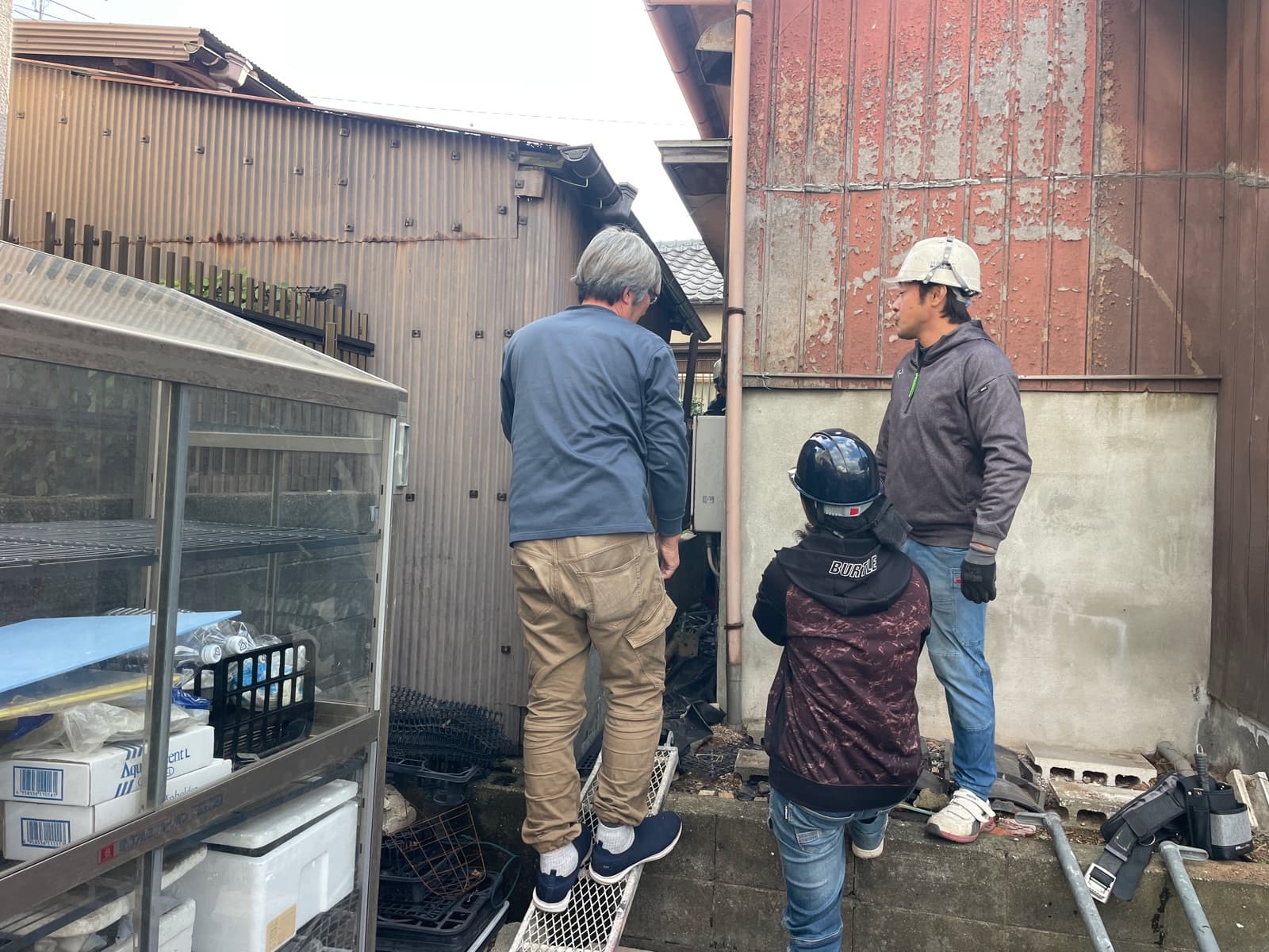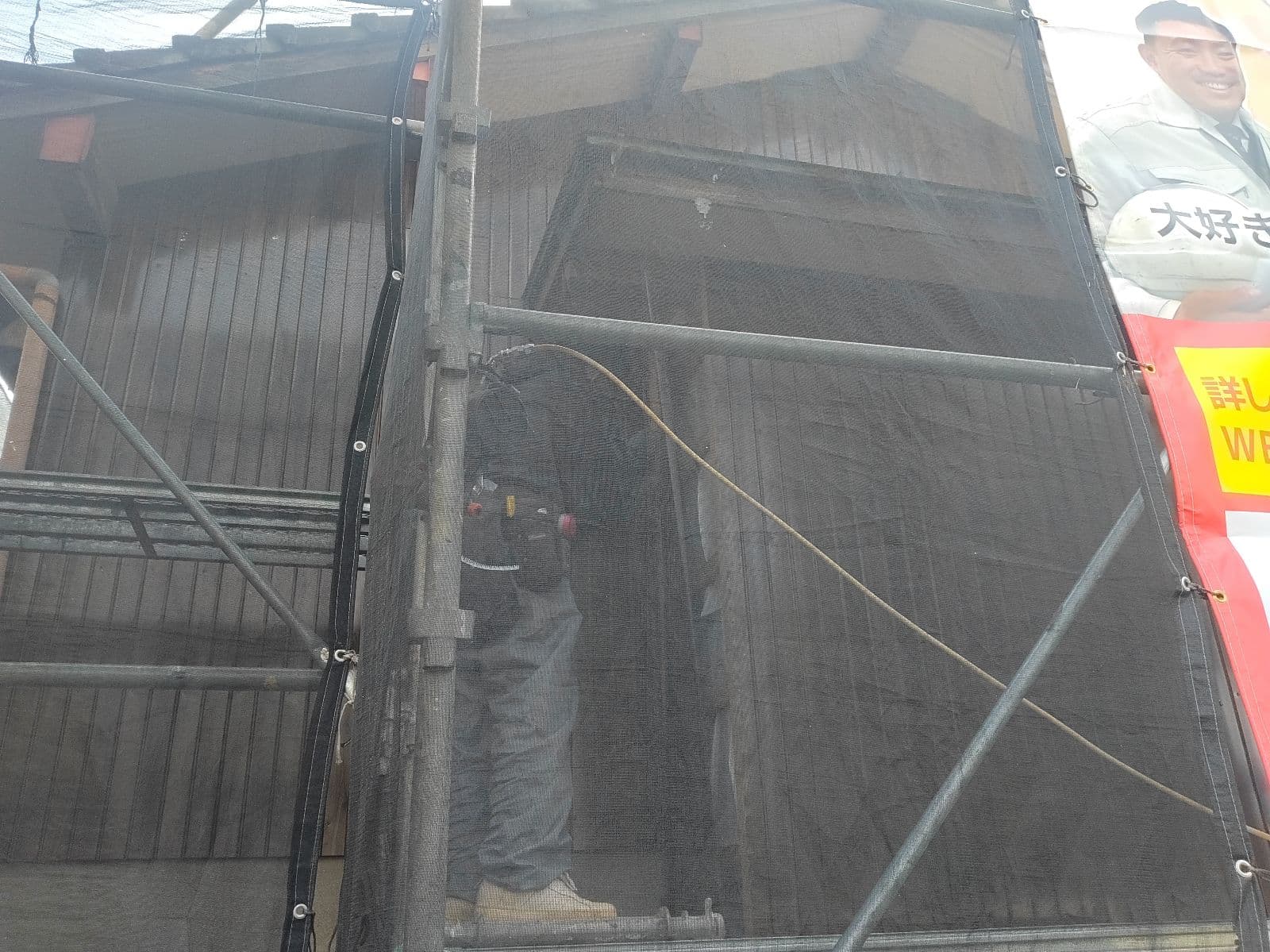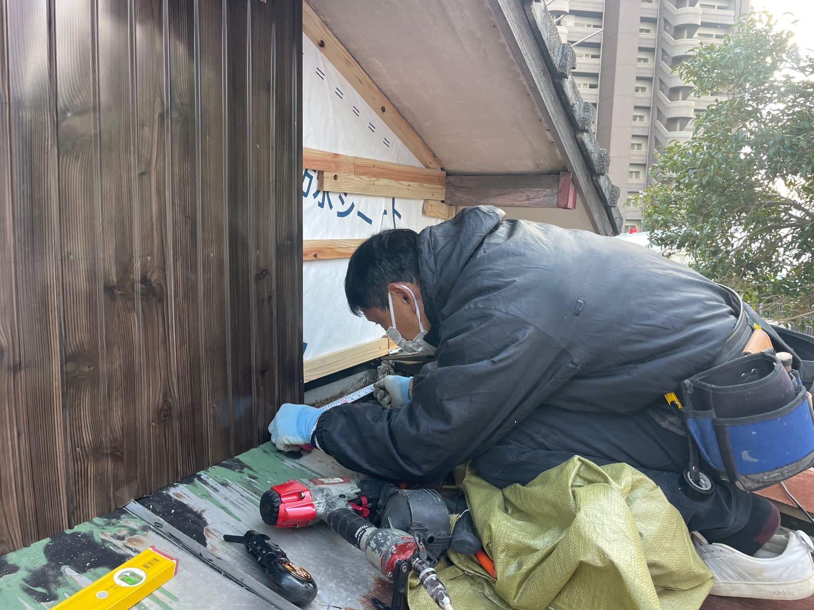 本日は外壁部分取り外しや防水シート張りをおこなっております!