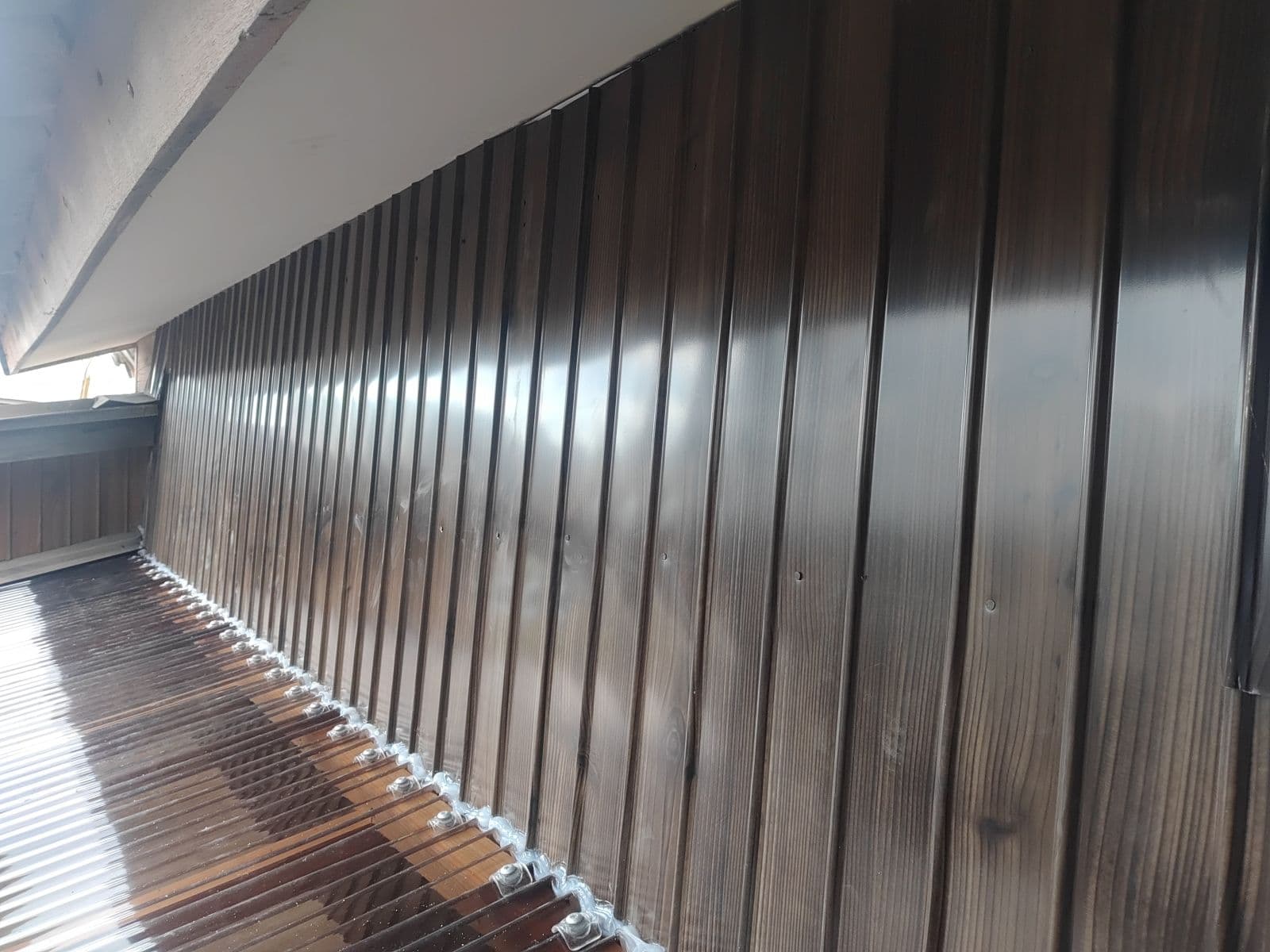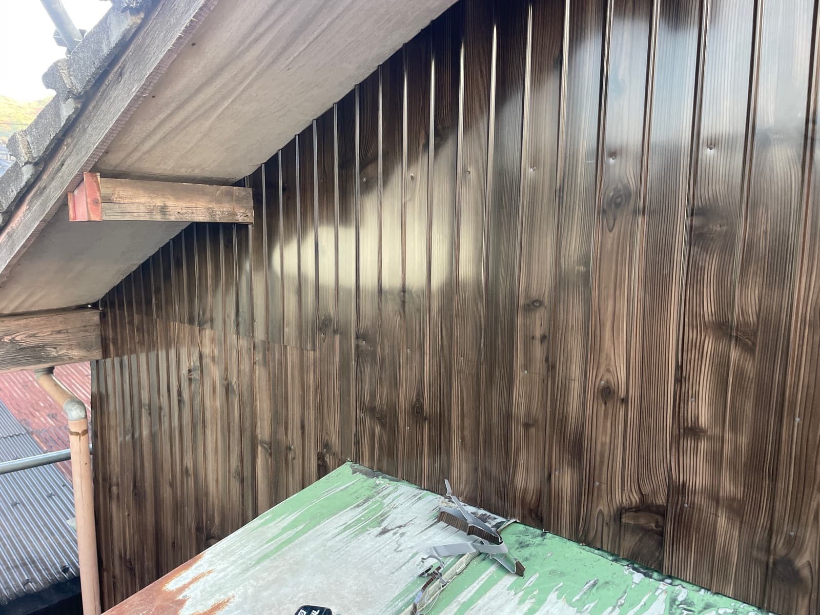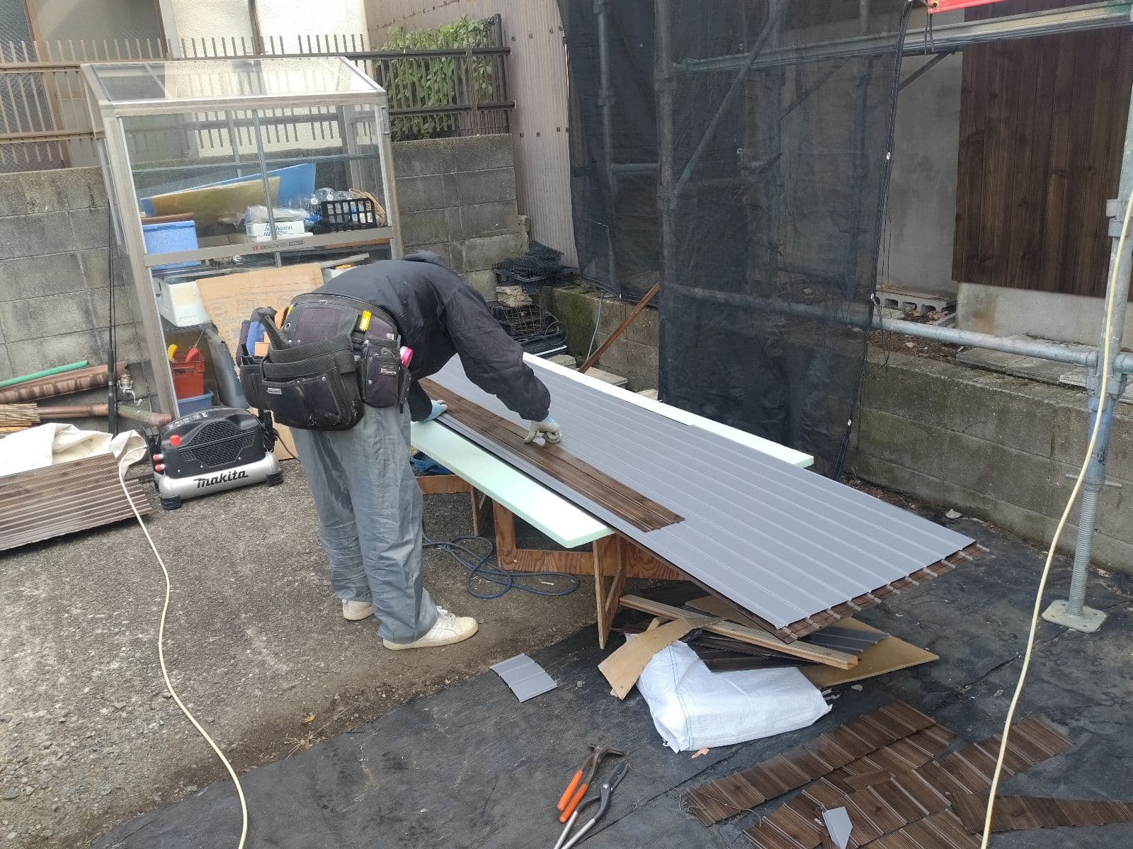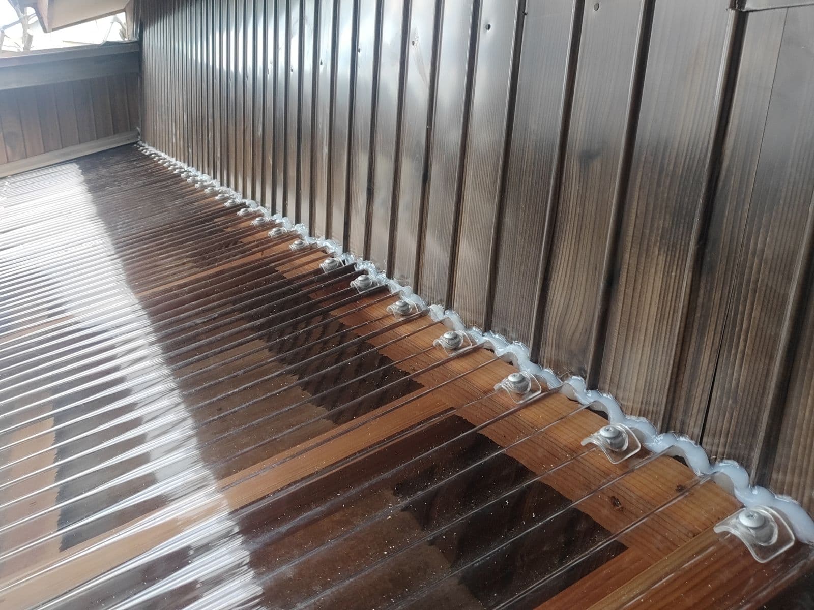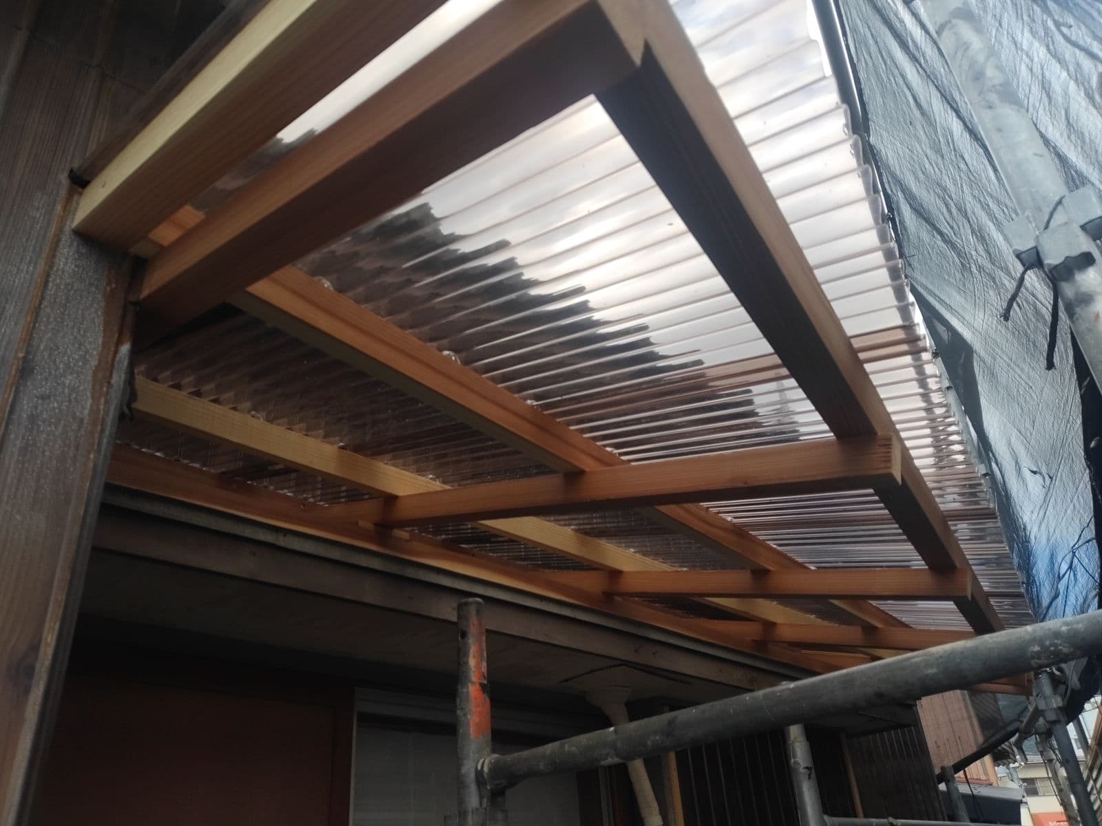 既存の外壁を撤去する際にどうしてもポリカ屋根を外さないといけなかったので