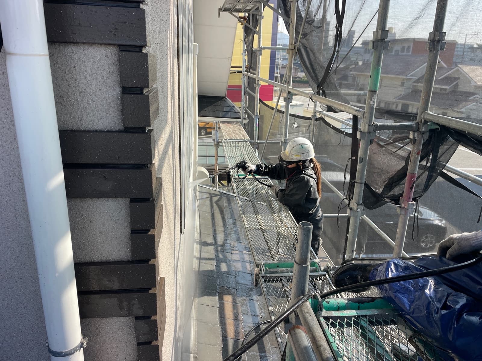 昨日に引き続き、付帯部の塗装をおこなっております!