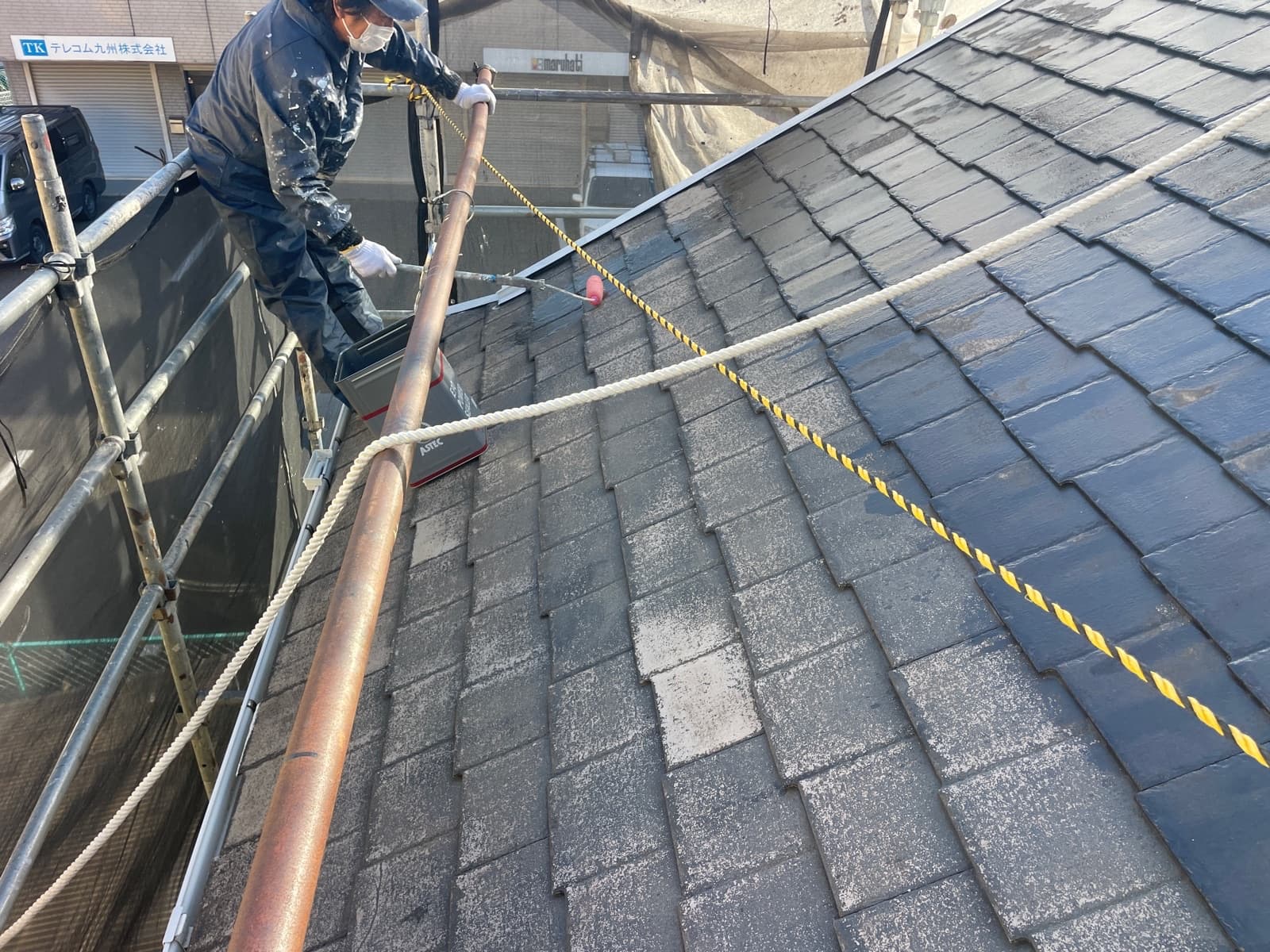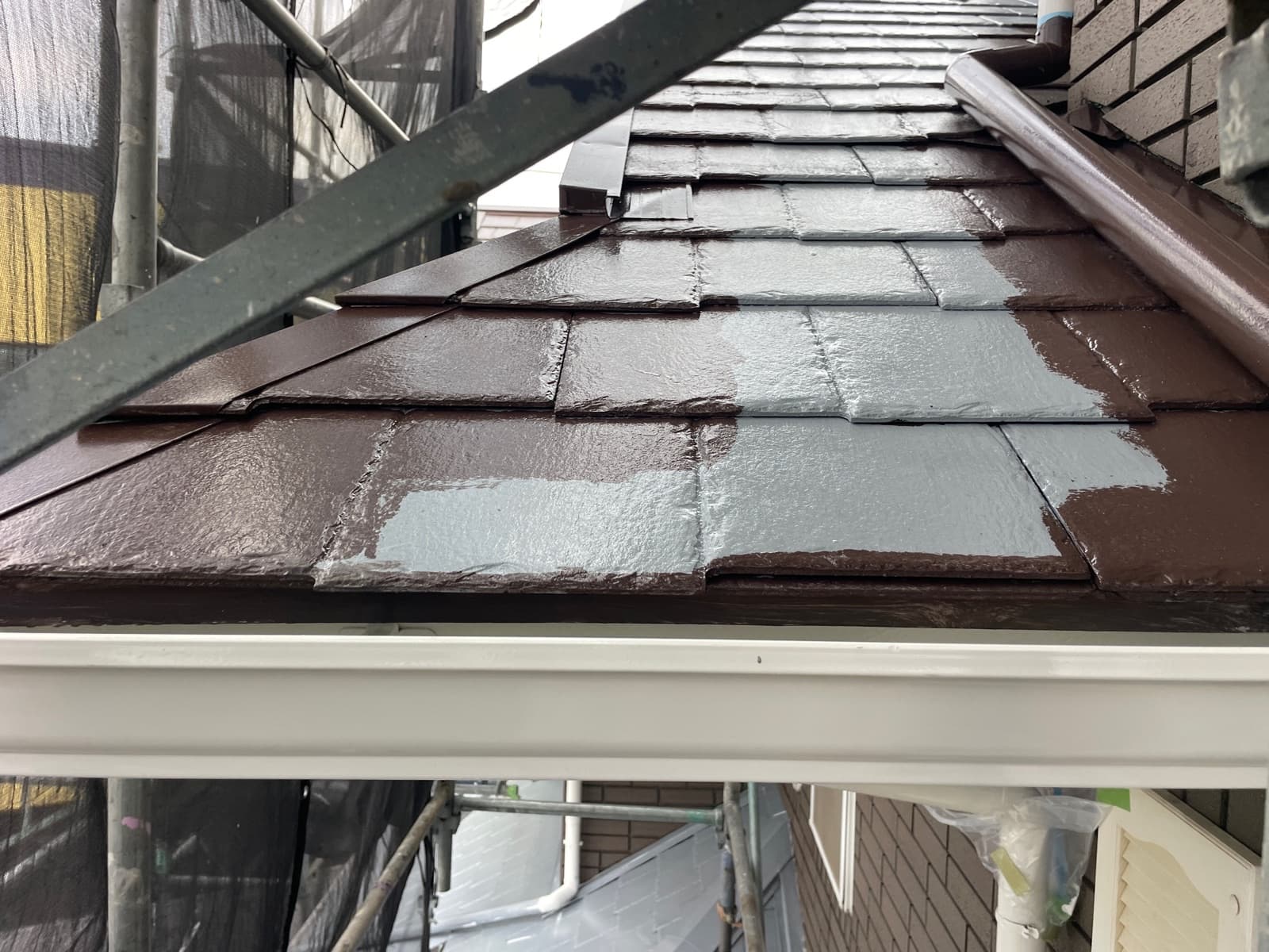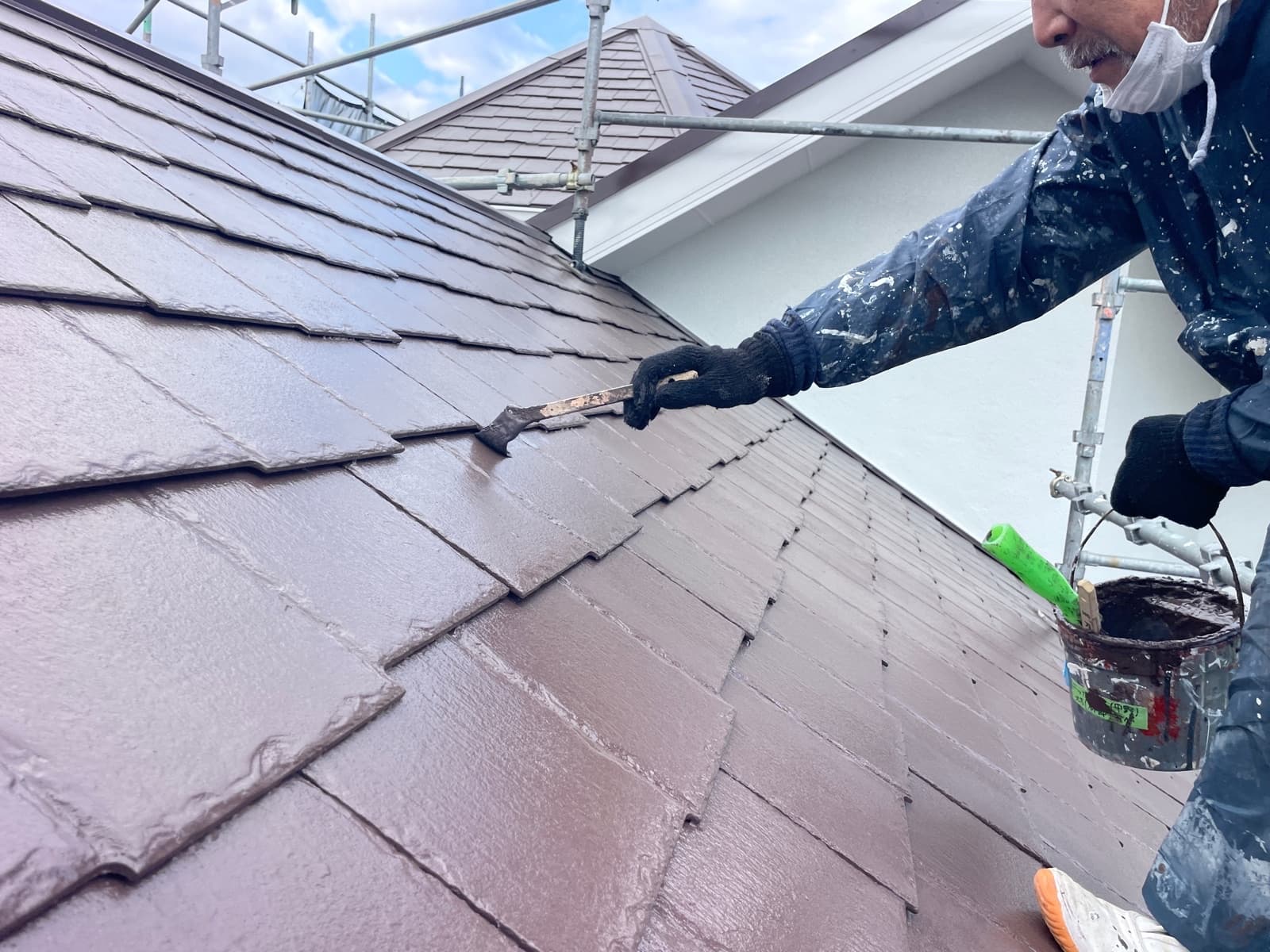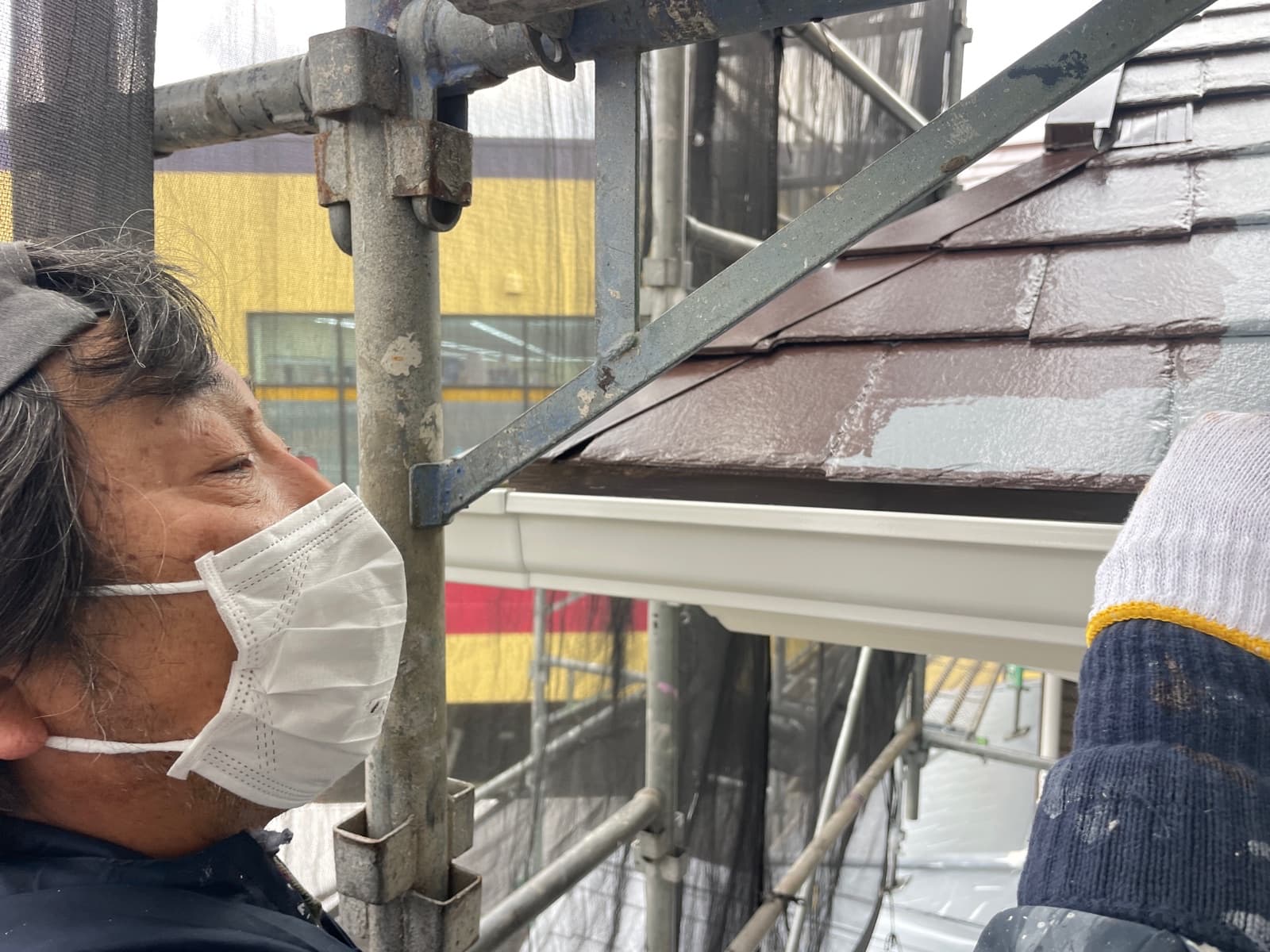 本日は、屋根下塗り2回目、中間検査、屋根上塗り1回目(途中)せて頂いております。
