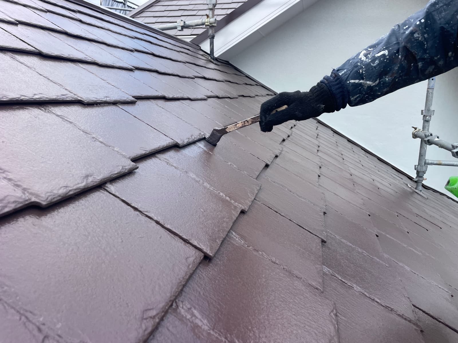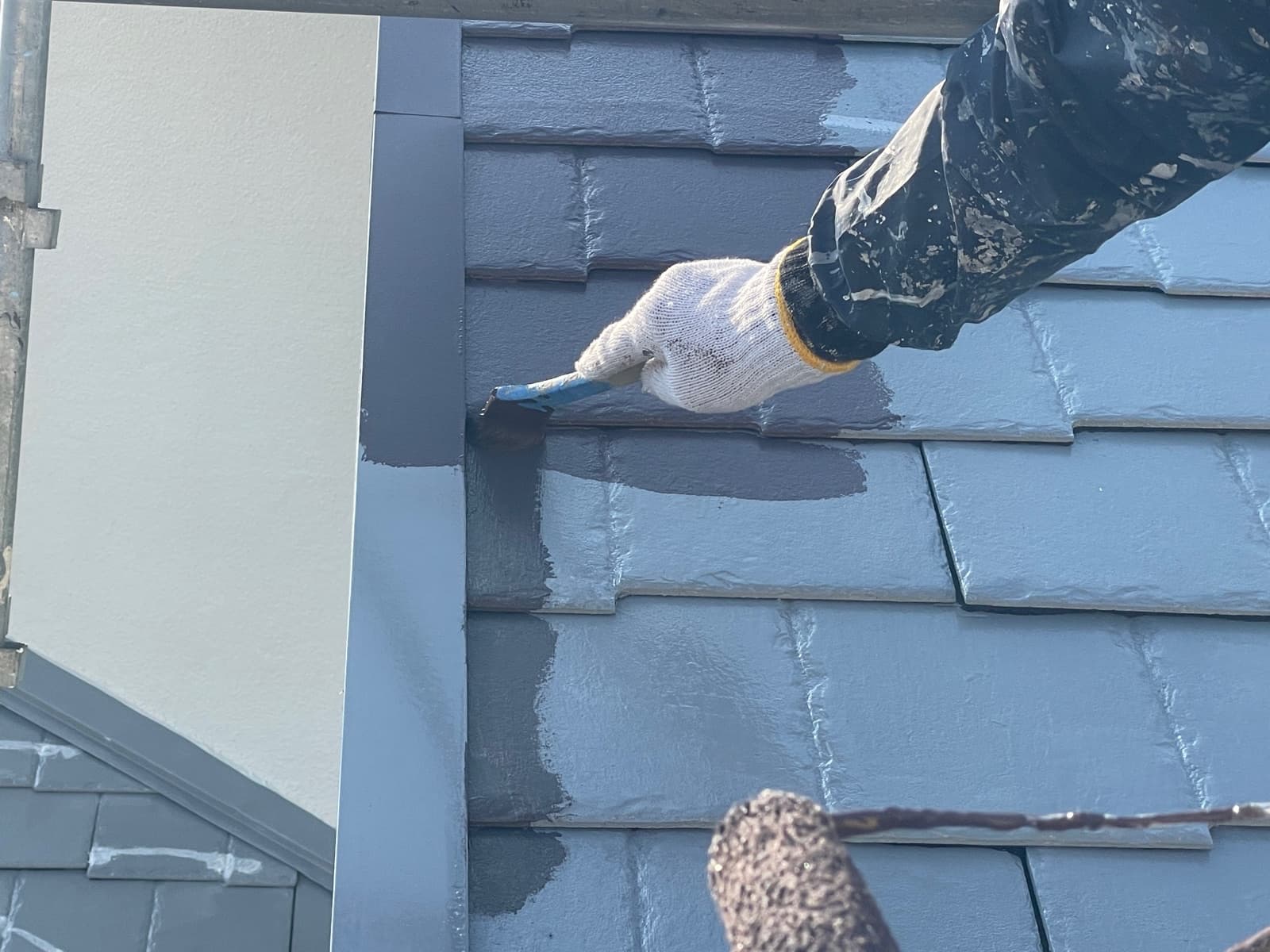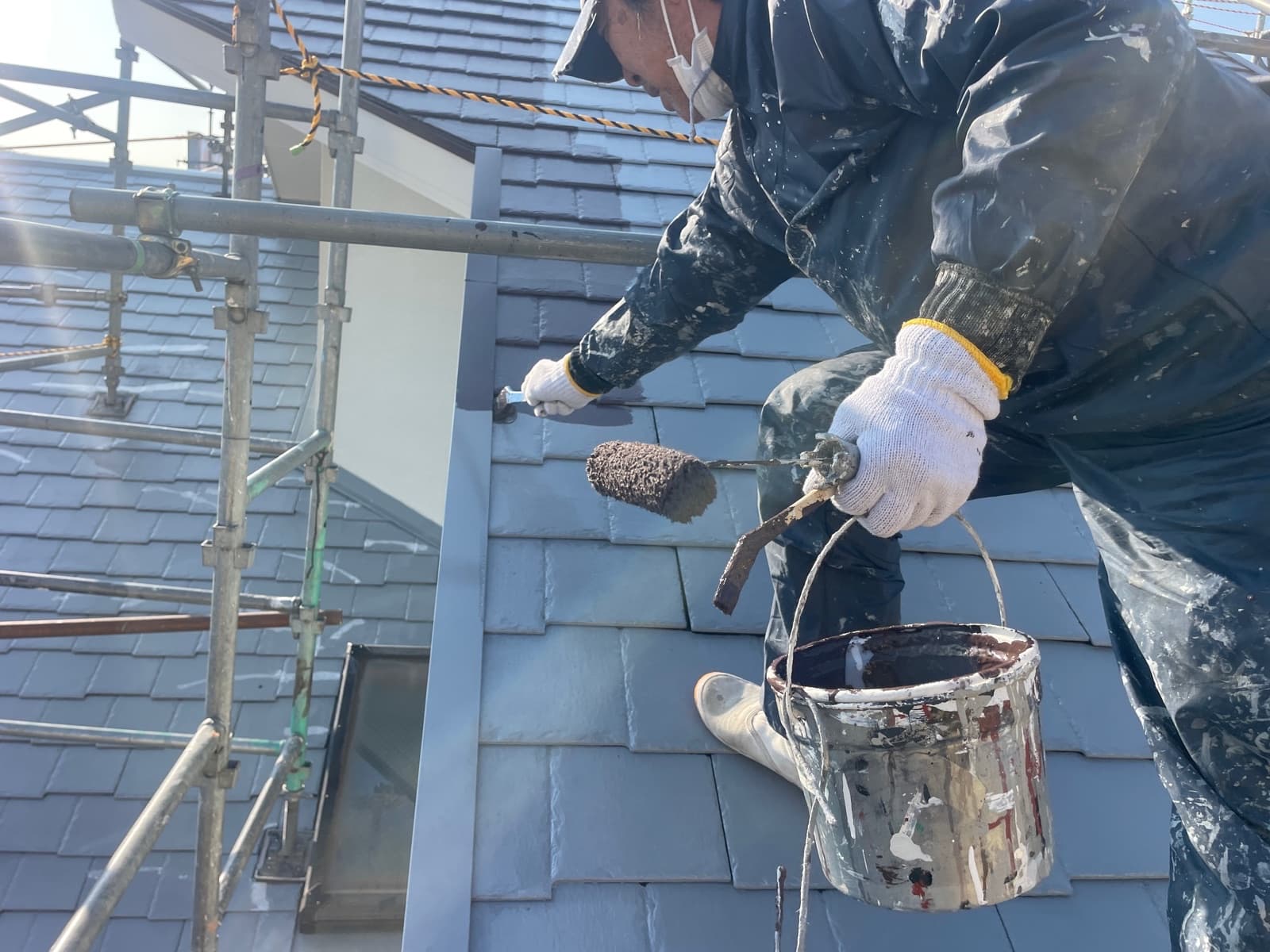 本日は、屋根下塗り2回目、中間検査、屋根上塗り1回目(途中)せて頂いております。