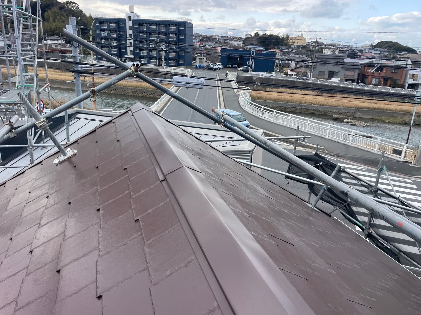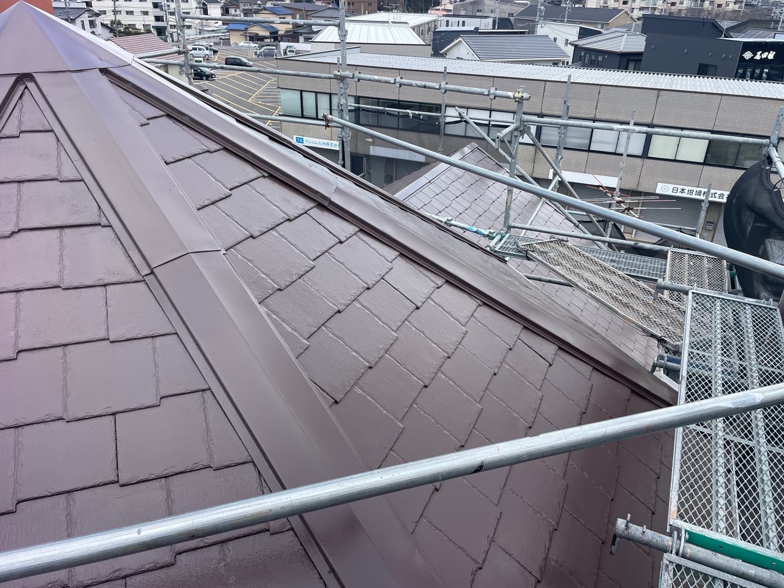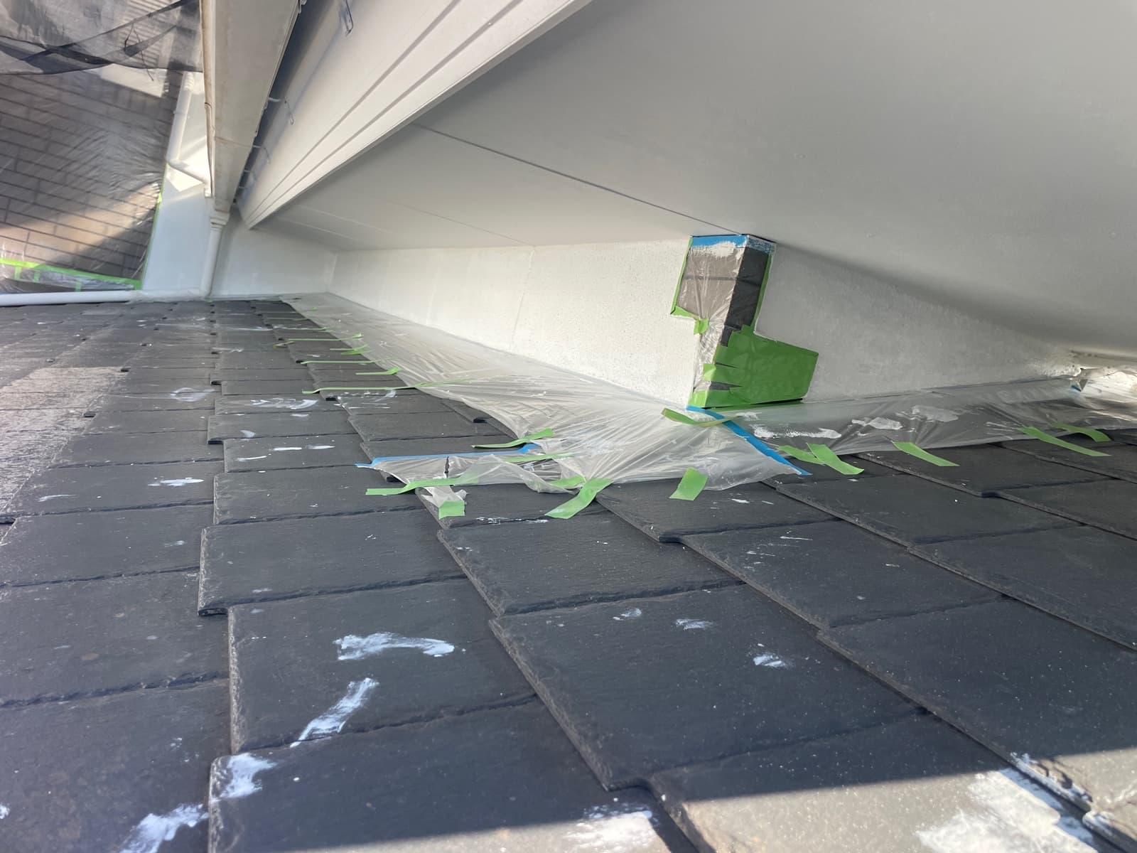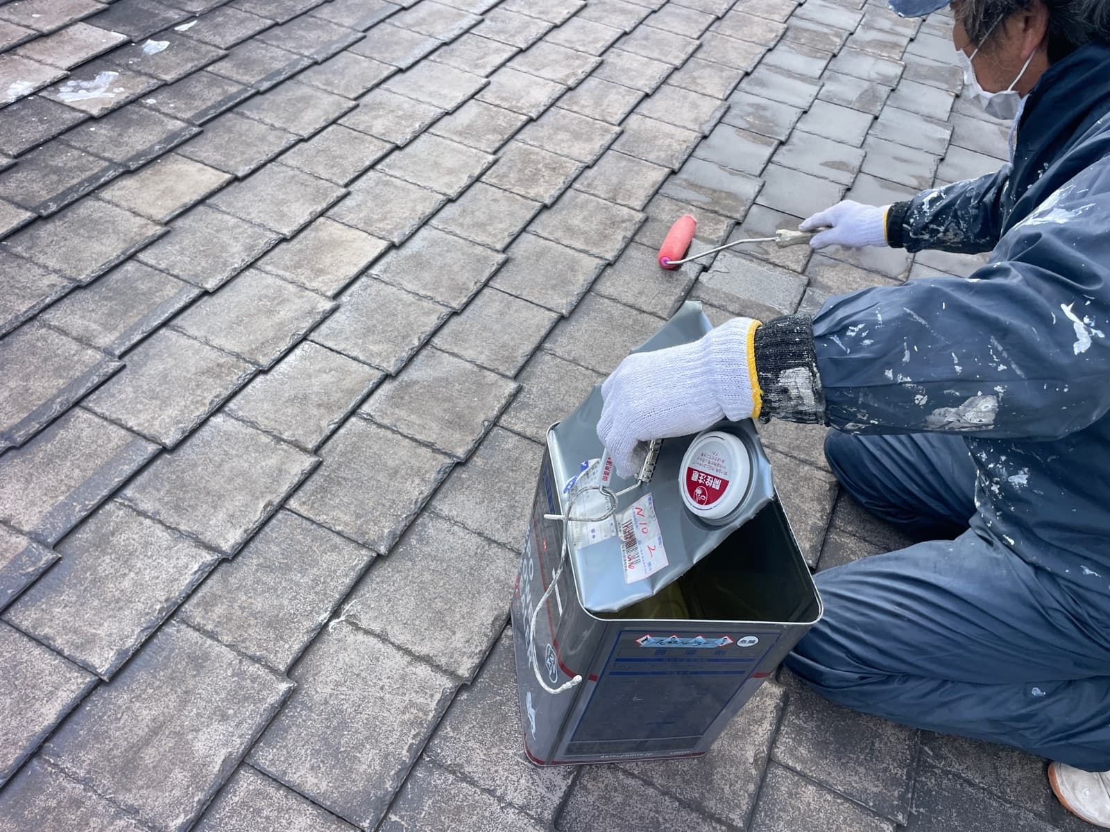 本日は、屋根下塗り2回目、中間検査、屋根上塗り1回目(途中)せて頂いております。