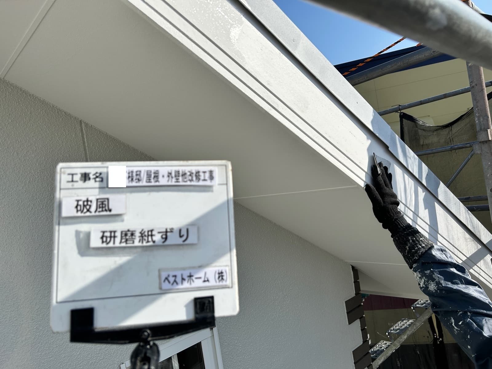 傷んでいる破風や鼻隠しには下塗りを行い、